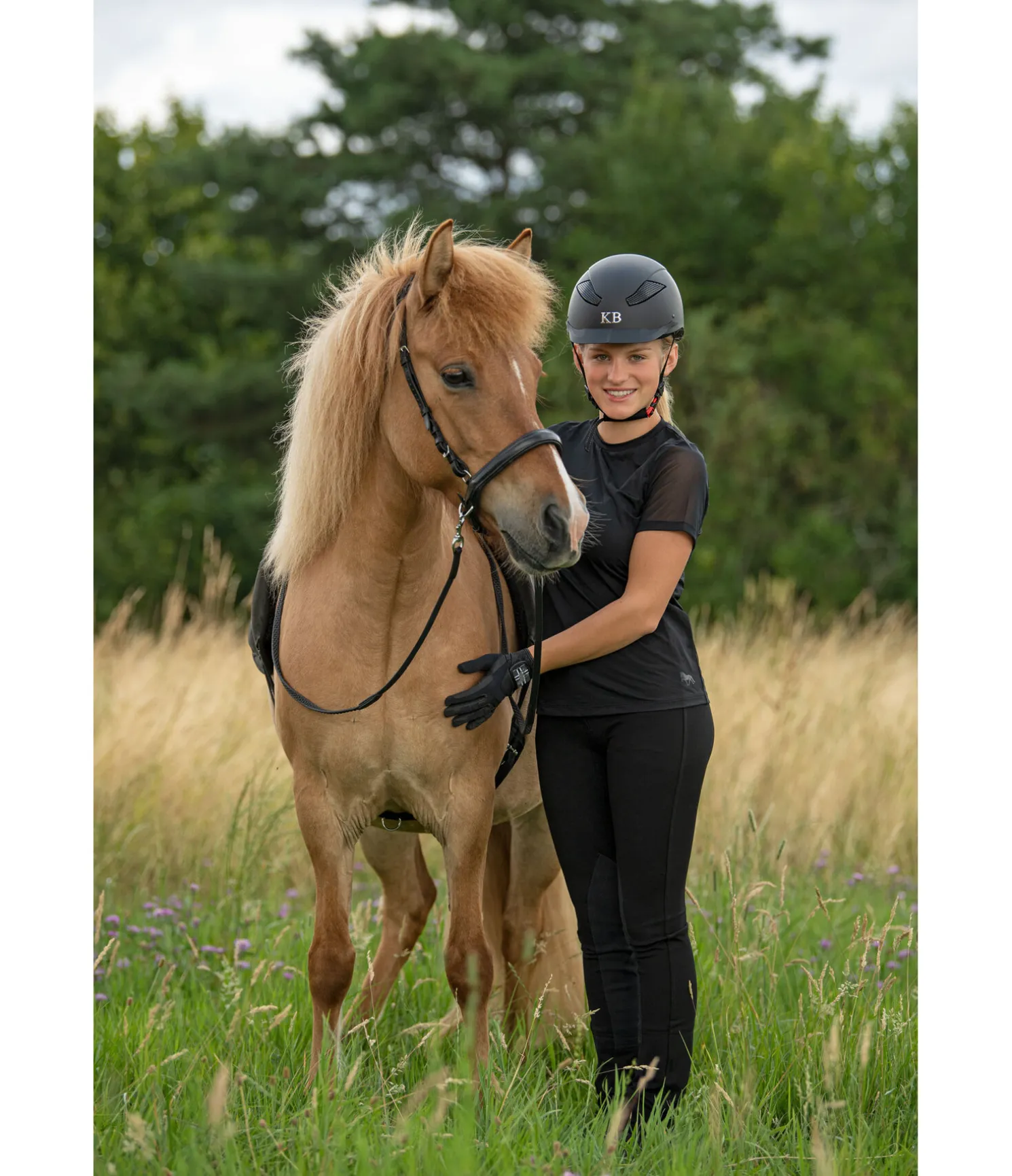Pantalon d’équitation jodhpur technique avec basanes en synthétique. Matière stretch respirante et facile d’entretien. Séchage rapide. Taille mi-haute. Poche arrière zippée. Sous-pieds élastiqués pour empêcher le pantalon de remonter. 68 % viscose, 27 % nylon, 5 % élasthanne.