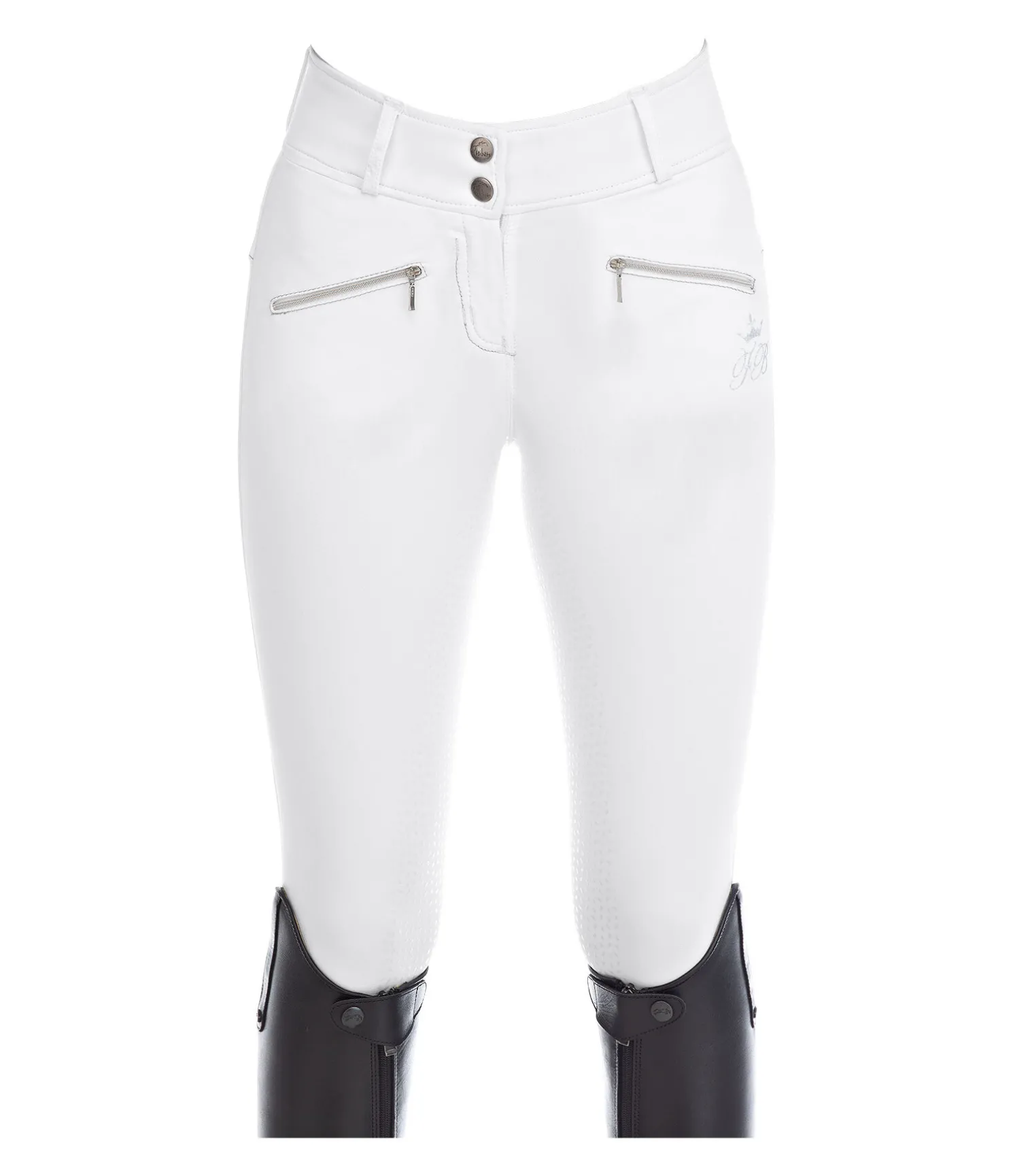 Élégant pantalon d’équitation. Fond intégral Grip siliconé pour une tenue parfaite en selle. Taille haute. Bas de jambe extensible sans patte auto-agrippante. Aucune couture au niveau des genoux. Matière extensible respirante, déperlante, résistante et facile d’entretien. Deux poches avant zippées. Surpiqûres de couleur contrastante. Ceinture élastiquée. Jolis imprimés Felix Bühler. 93 % nylon, 7 % élasthanne.