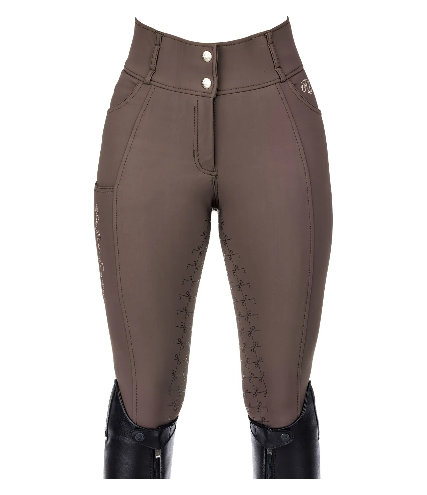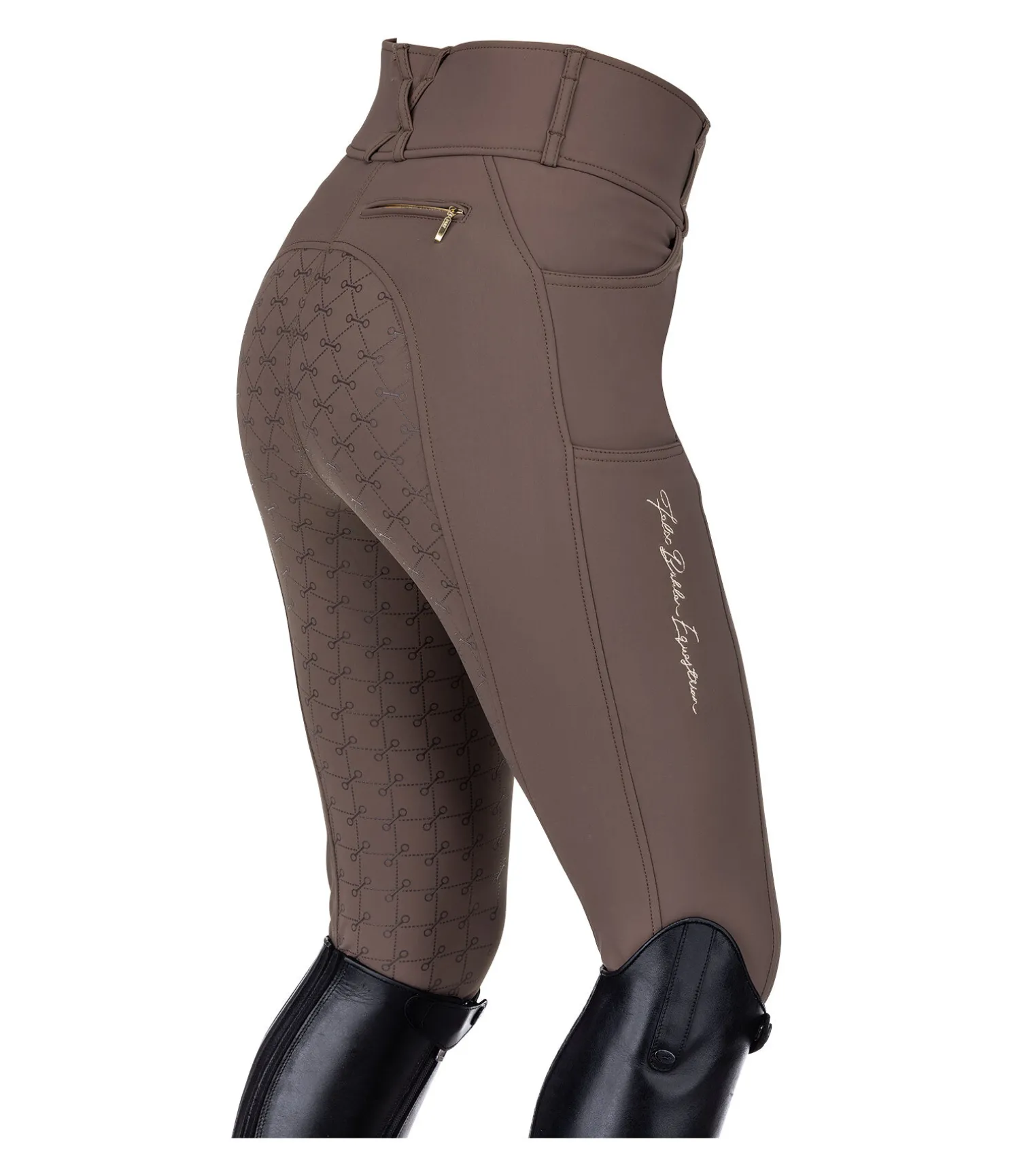 Pantalon d’équitation chaud et extensible. Fond intégral grip en silicone avec motifs de mors. Matière respirante et coupe-vent. Intérieur confortable. Broderie Felix Bühler sur la jambe. Une poche arrière zippée, une poche latérale sur la cuisse pour téléphone portable et deux poches avant. Large ceinture élastiquée avec 2 boutons. Aucune couture au niveau des genoux. Bas de jambe extensible en matière stretch. 77 % polyamide, 23 % élasthanne.