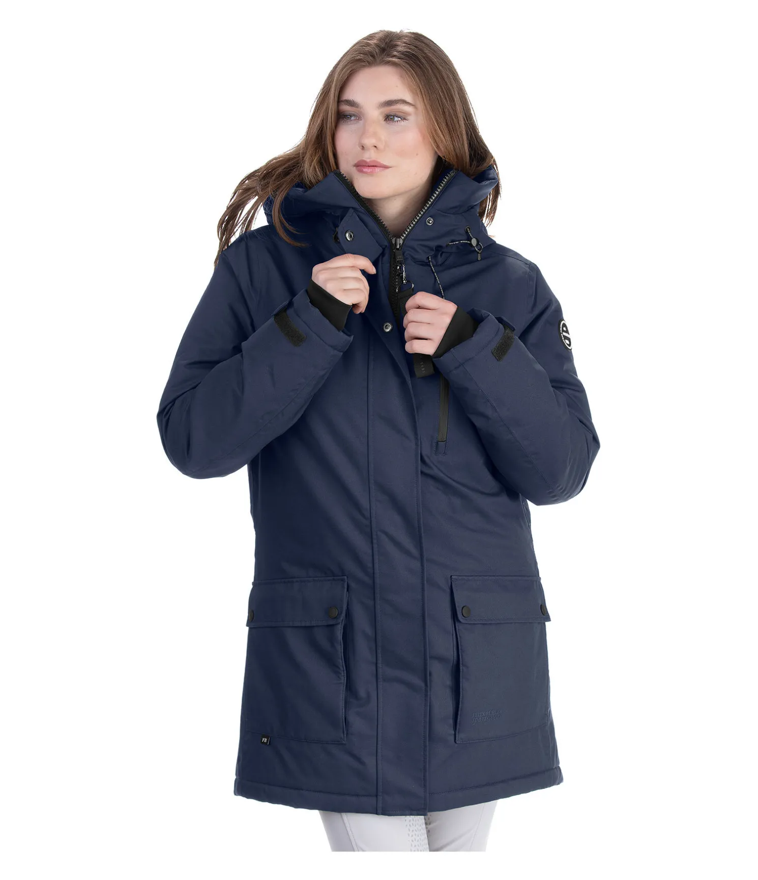 Parka d’équitation technique avec capuche haute ajustable. Bouton-pression pour fixer la capuche dans le dos. Matière imperméable (10.000 mm), coupe-vent et respirante. Doublure matelassée douce imitation duvet. Fermeture à glissière double sens dissimulée. 2 poches avant à rabat avec boutons pression, 1 poche de poitrine avec zip étanche, 1 poche intérieure zippée. Taille et bas des manches réglables. Bas des manches élastiqué et coupe-vent. 2 fentes cavalières zippées à l’arrière. 100 % polyester.