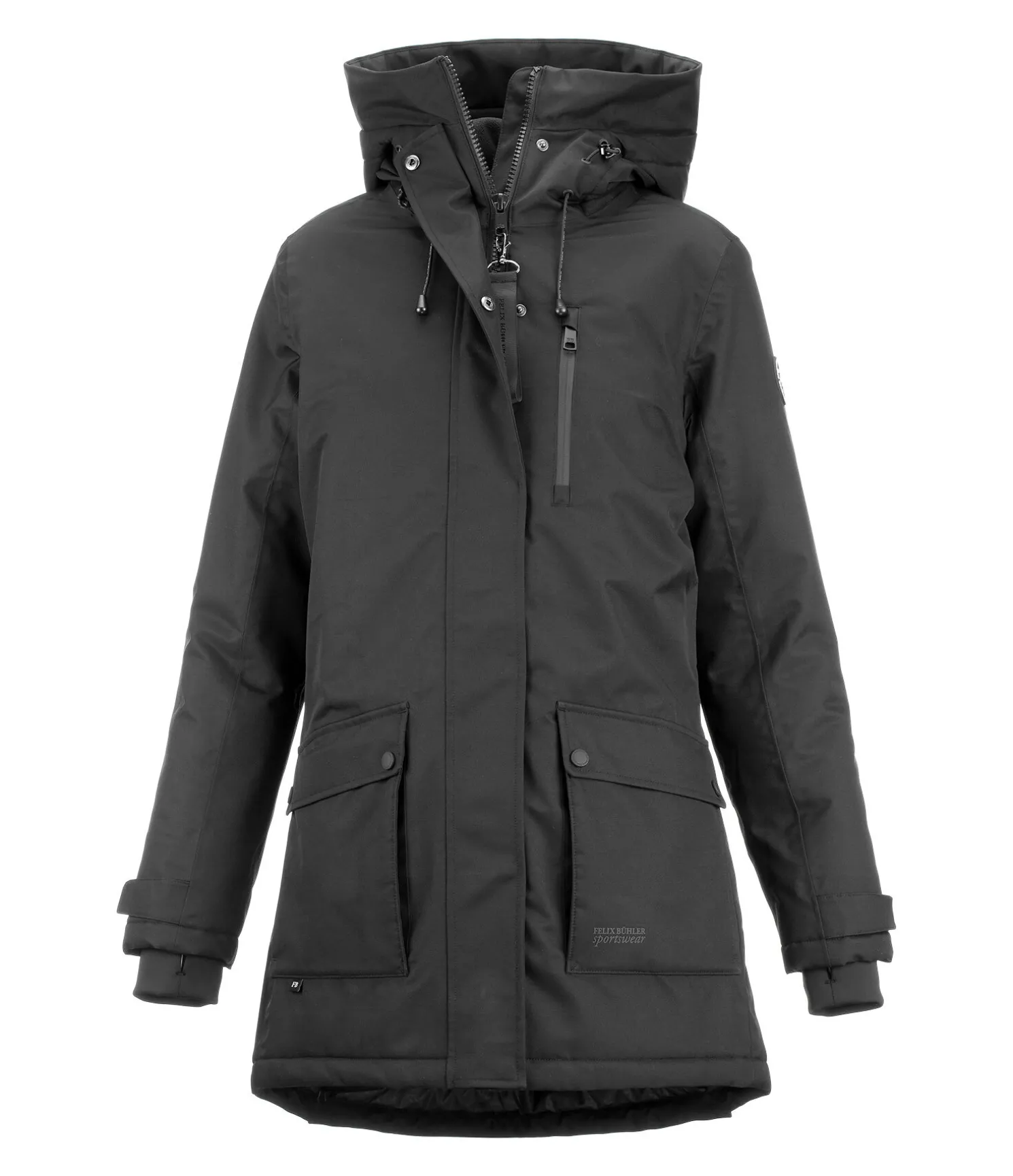 Parka d’équitation technique avec capuche haute ajustable. Bouton-pression pour fixer la capuche dans le dos. Matière imperméable (10.000 mm), coupe-vent et respirante. Doublure matelassée douce imitation duvet. Fermeture à glissière double sens dissimulée. 2 poches avant à rabat avec boutons pression, 1 poche de poitrine avec zip étanche, 1 poche intérieure zippée. Taille et bas des manches réglables. Bas des manches élastiqué et coupe-vent. 2 fentes cavalières zippées à l’arrière. 100 % polyester.
