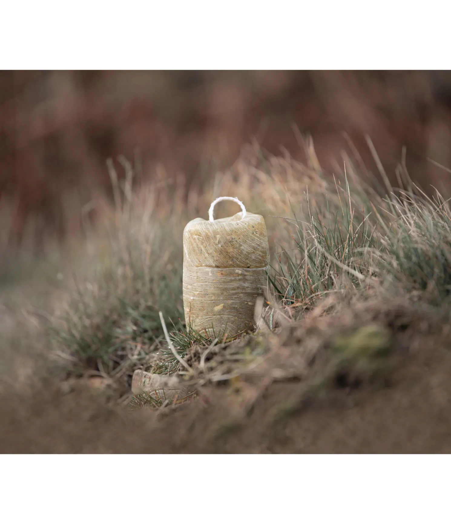 Pierre à lécher à but de jeu ou de récompense. Contient des plantes bénéfiques, comme des graines de fenouil, du thym, de la réglisse, des fleurs de sureau, des feuilles de sauge et du plantain. À accrocher simplement dans un box ou un paddock. 1 kg.