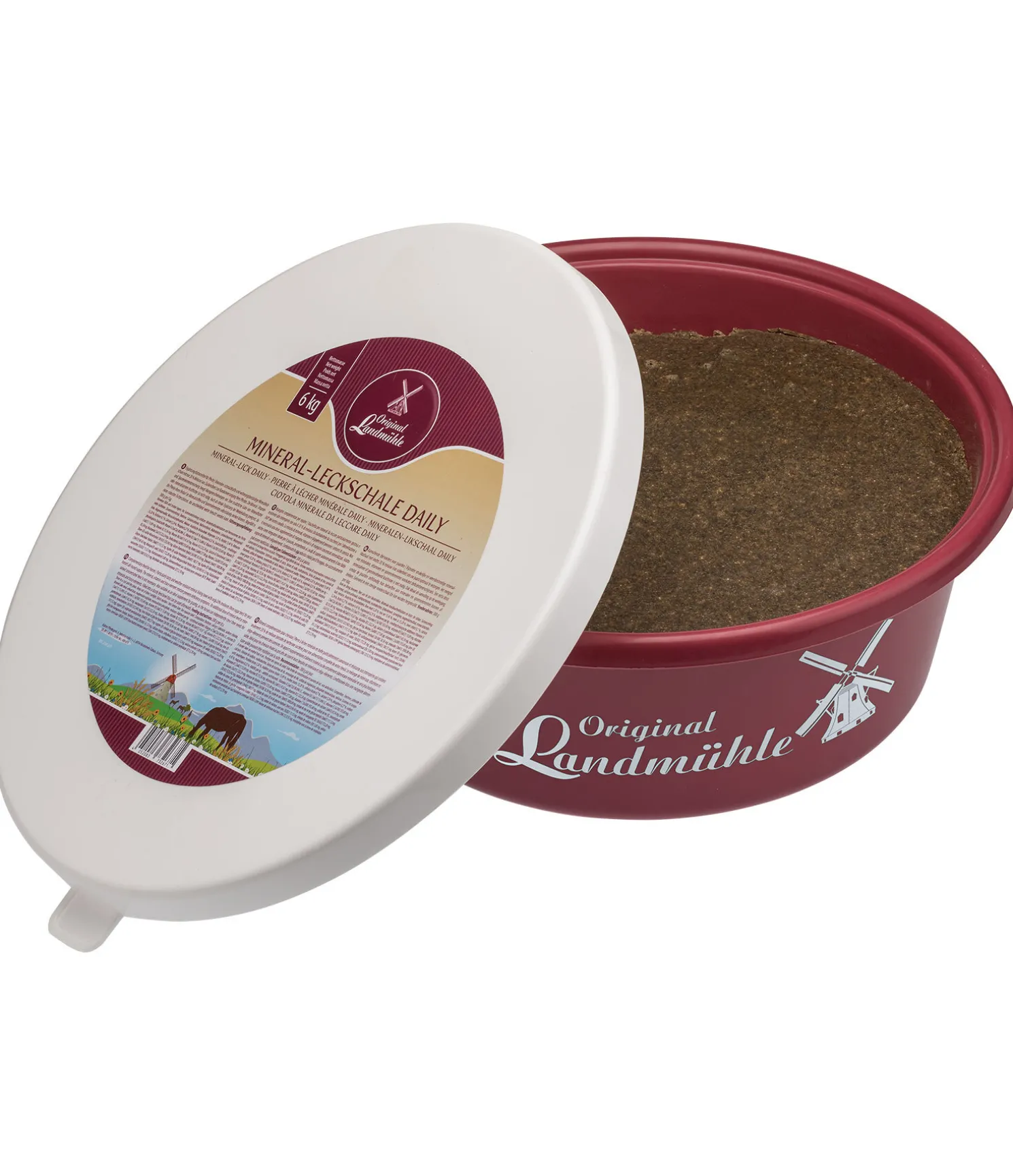 Mélange de minéraux, de vitamines et d’oligo-éléments (aliment complémentaire pour chevaux). Couvre les besoins journaliers en minéraux, vitamines et oligo-éléments essentiels. Des compléments minéraux ou des aliments concentrés minéralisés ne sont alors plus nécessaires. Complément idéal pour les chevaux vivant au pré, car les herbes présentes dans les pâtures ne suffisent souvent pas à couvrir les besoins en minéraux des chevaux à elles seules. La pierre à lécher est fixée dans une boîte en plastique rigide réutilisable avec couvercle moulé adapté, dans une optique de réduction des déchets.