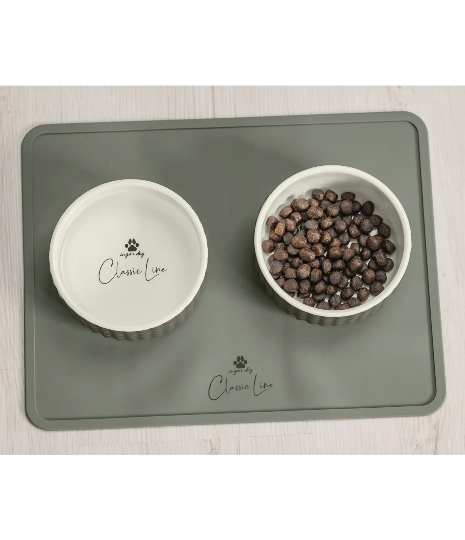 Plateau pour gamelles en silicone lavable et enroulable avec rebord protecteur. Compatible lave-vaisselle. Empêche les gamelles de glisser et protège le sol des restes de nourriture et de liquide. Assorti à la gamelle en céramique sugar dog Berkeley (231 086). 40 x 30 cm.