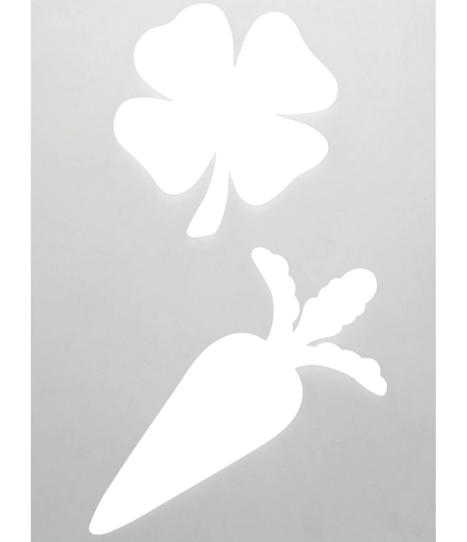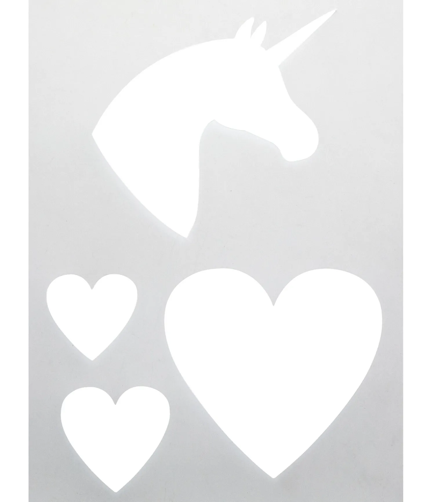 Pochoirs pour tondre, brosser ou taguer des motifs. En matière synthétique de haute qualité. Réutilisables et lavables. Le kit comprend 2 pochoirs: coeur de différentes tailles de 5 cm à 12 cm, licorne, trèfle à quatre feuilles et carotte.