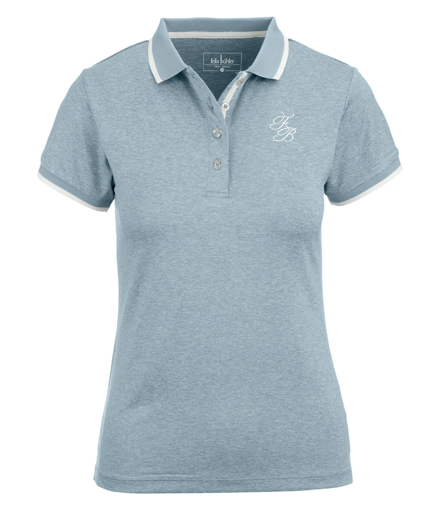 Polo d’équitation technique. Modèle classique à manches courtes en jersey extensible. Aspect chiné. Bord-côte avec liseré de couleur contrastante sur le col et le bas des manches. Patte de boutonnage. Logo brodé Felix Bühler sur la poitrine. Matière respirante à séchage rapide. 92 % polyester, 8 % élasthanne