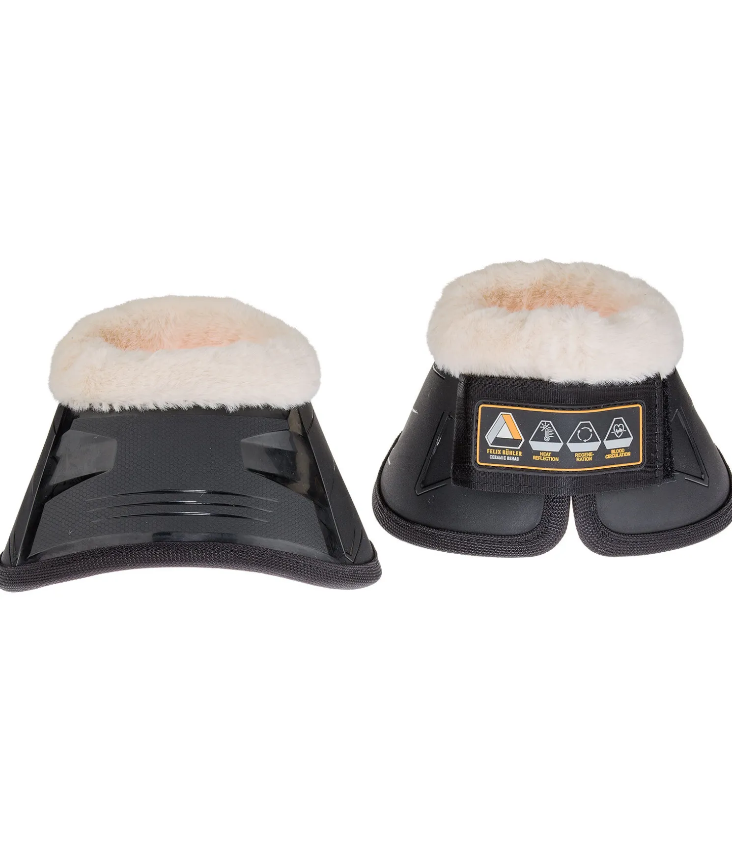 Protège-glomes anatomique solides en TPU avec taquet anti-twist pour empêcher la rotation de la protection. Les fibres de céramique intégrées à la doublure intérieure en tissu Air mesh respirant, favorisent la circulation sanguine et empêchent ainsi le refroidissement de l’articulation pendant les phases d’immobilisation. Elles peuvent également soutenir les articulations pendant la phase d’échauffement et durant l’entraînement. Ces protège-glomes conviennent également parfaitement aux chevaux souffrant de maladie chronique au niveau du sabot comme le syndrome naviculaire ou l’arthrose. La bordure douce en polaire Teddy prévient des irritations dues aux frottements au niveau du pli du paturon, ce qui est particulièrement important en cas de port prolongé. Nous recommandons de nettoyer régulièrement la polaire Teddy et de contrôler quotidiennement la peau au niveau du protège-glome en cas de port prolongé. Patte auto-agrippante solide pour un maintien optimal. Compatible avec les guêtres à coque rigide Felix Bühler Ceramic Rehab (art. 590 009) et les protège-boulets Felix Bühler Ceramic Rehab (art. 590 010).