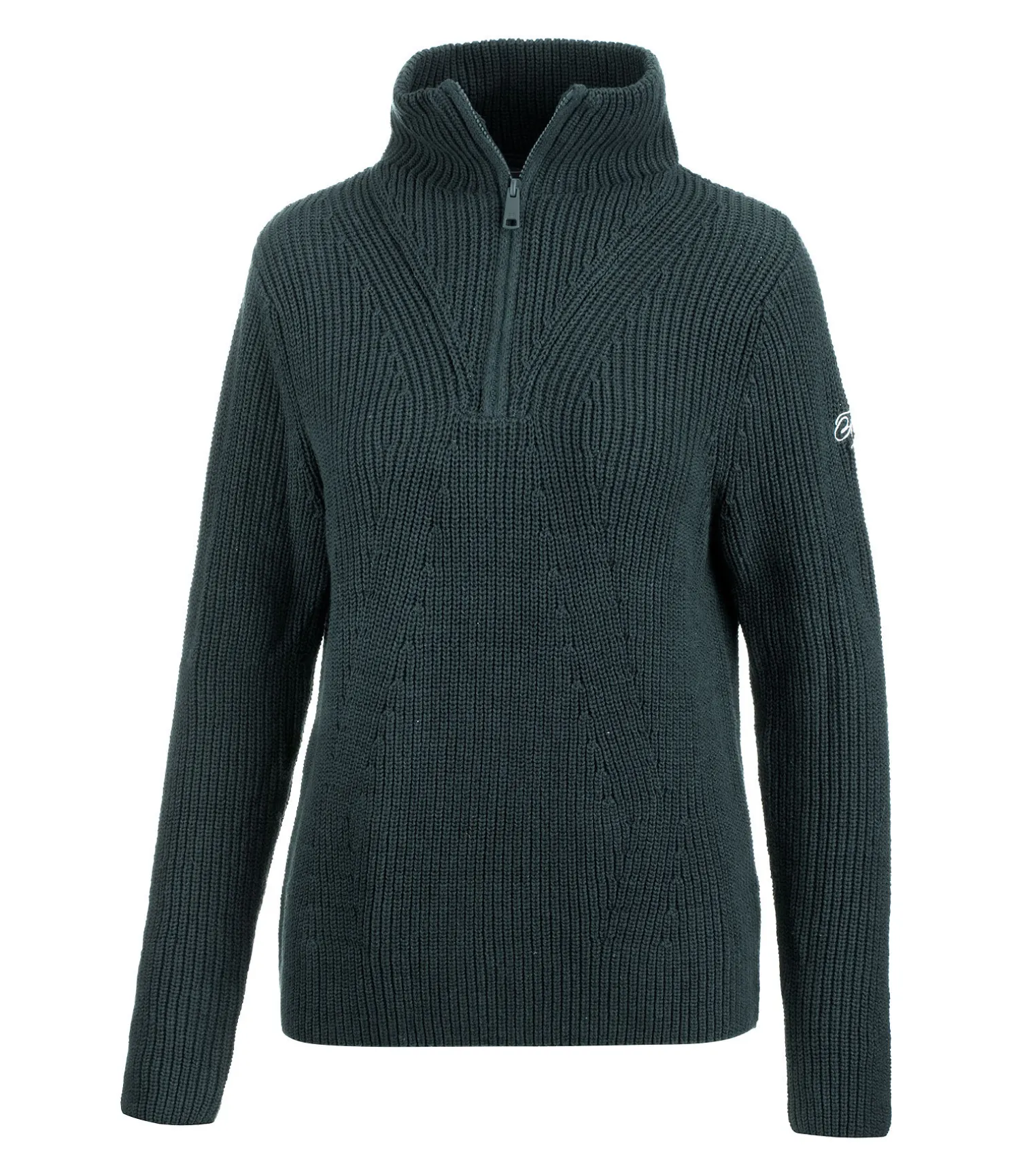 Pull doux en maille côtelée avec col camionneur. Coupe décontractée. Logo discret brodé sur la manche. 60 % coton, 40 % polyacrylique.