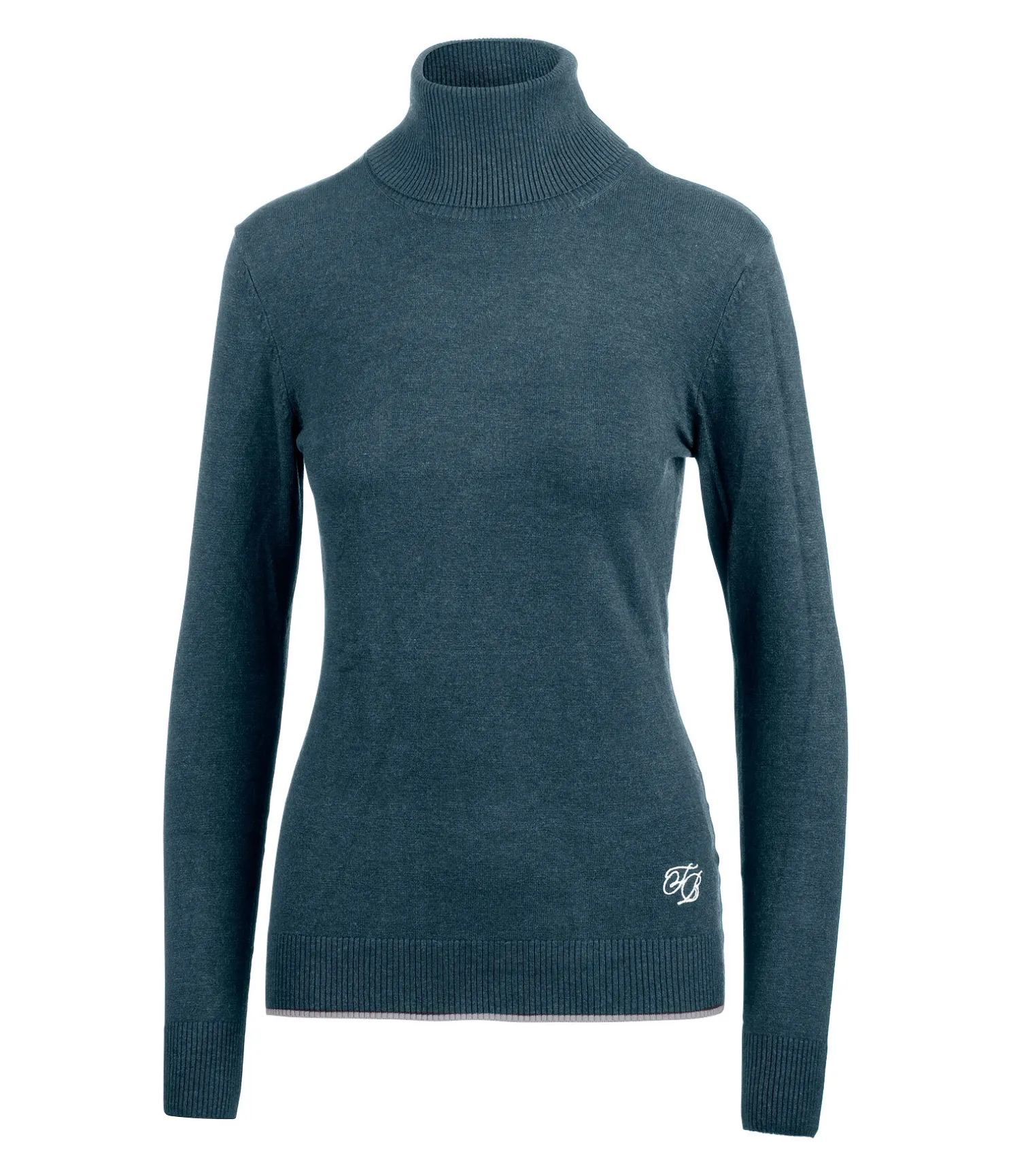 Pull-over doux à col roulé. Aspect chiné. Logo brodé. Finition côtelée en bas des manches et à la taille. Bordure de couleur contrastante à la taille. 80 % viscose, 20 % nylon.