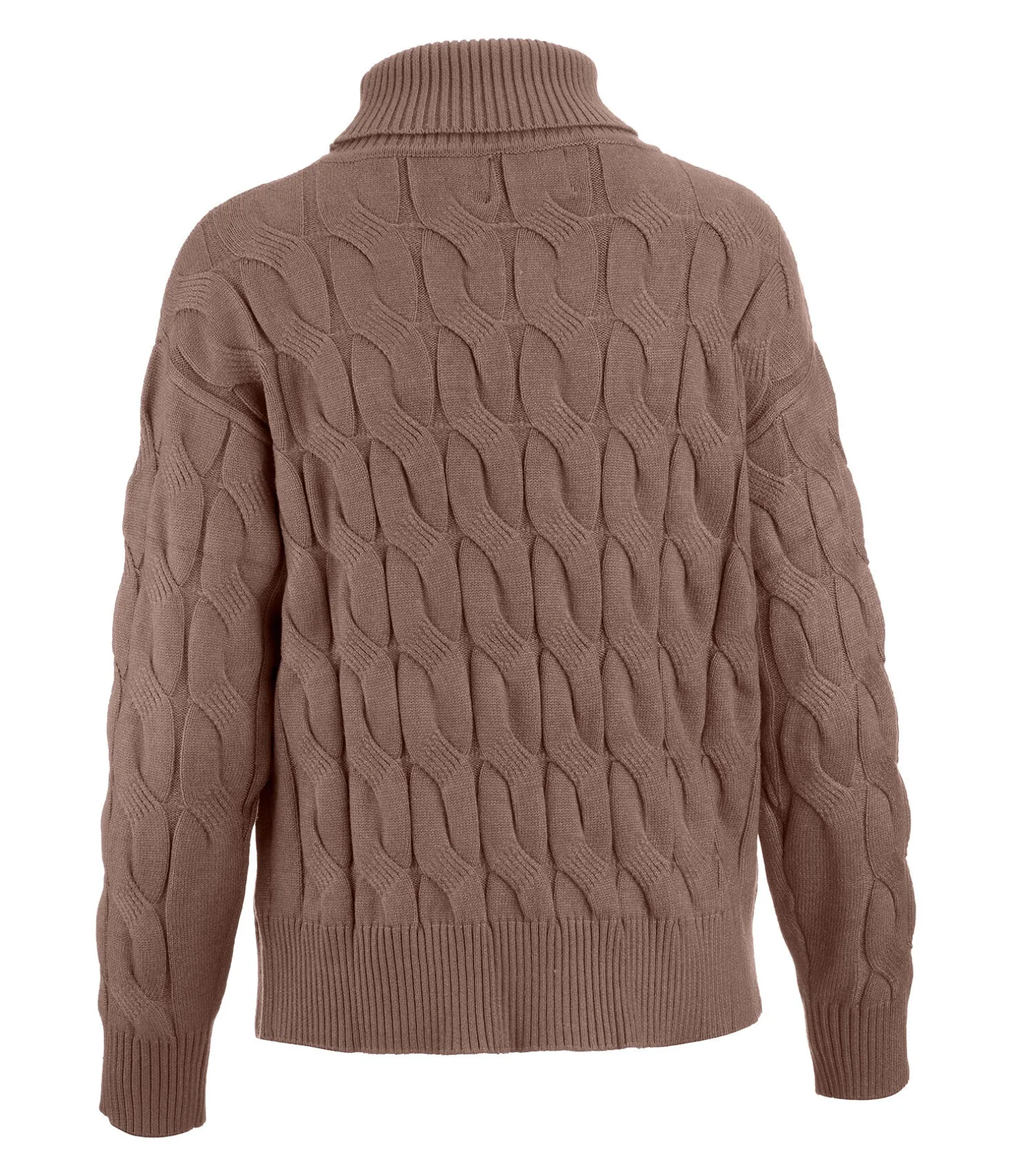 Pull-over à col roulé extrêmement doux et chaud en tricot torsadé. Bordure côtelée au col, en bas des manches et à la taille. 54 % polyacrylique, 28 % polyester, 18 % nylon.