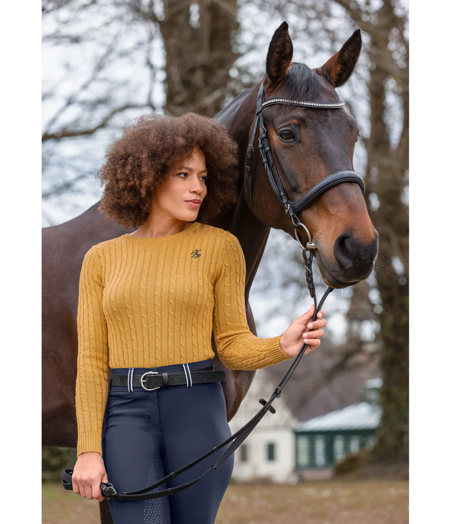Pull-over à col rond en maille torsadée. Broderie logo Felix Bühler sur la poitrine. Finitions côtelées. 50 % viscose, 30 % polyester, 20 % nylon.