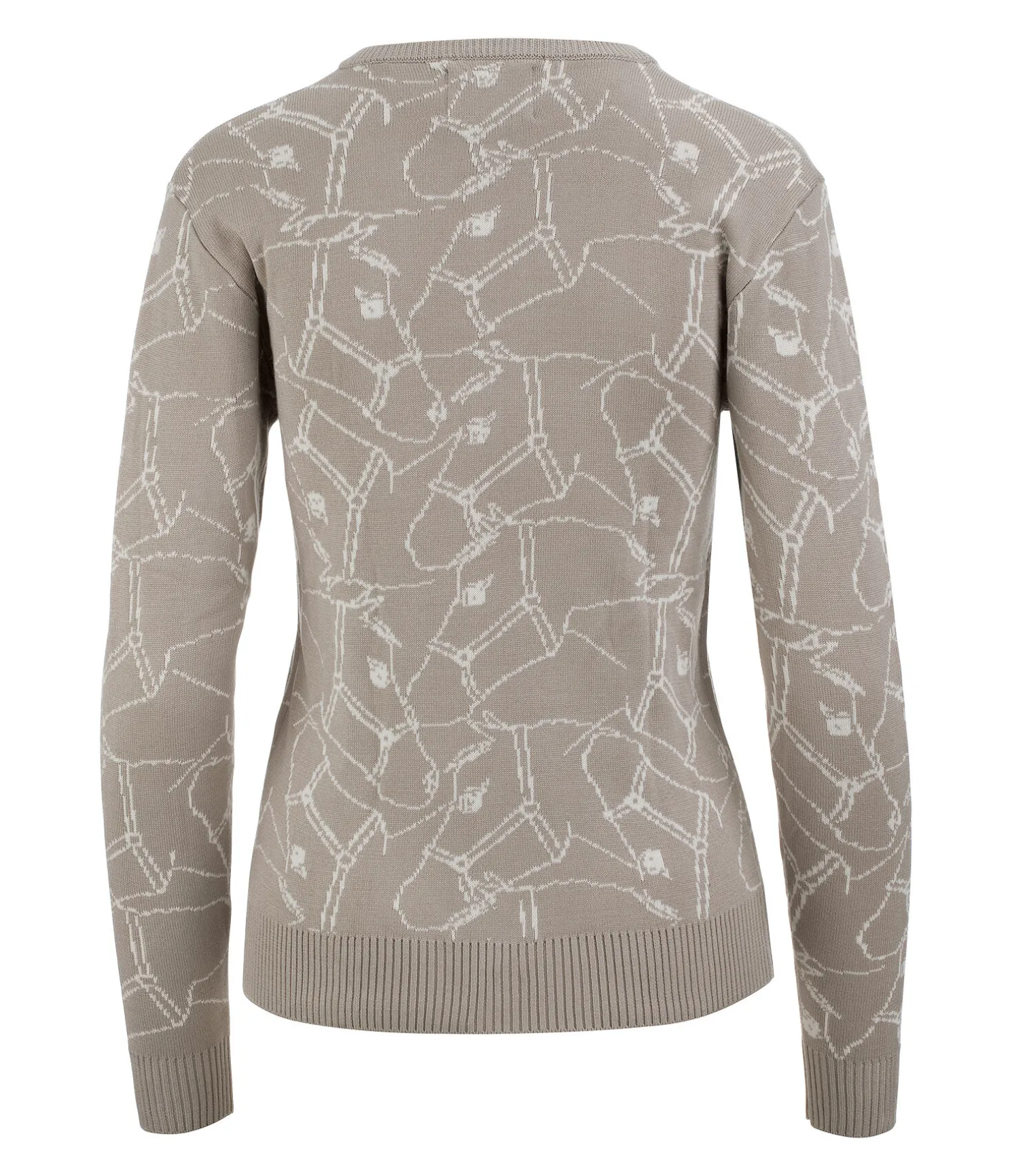 Pull col V doux, tissé en jacquard avec imprimé cheval. Logo brodé sur la poitrine. Finition en bord-côte sur le col, le bas des manches et l’ourlet. 55 % viscose, 45 % polyacrylique.