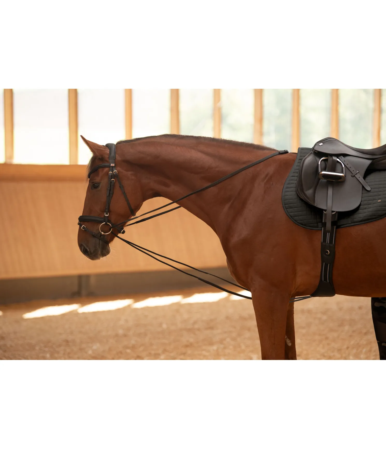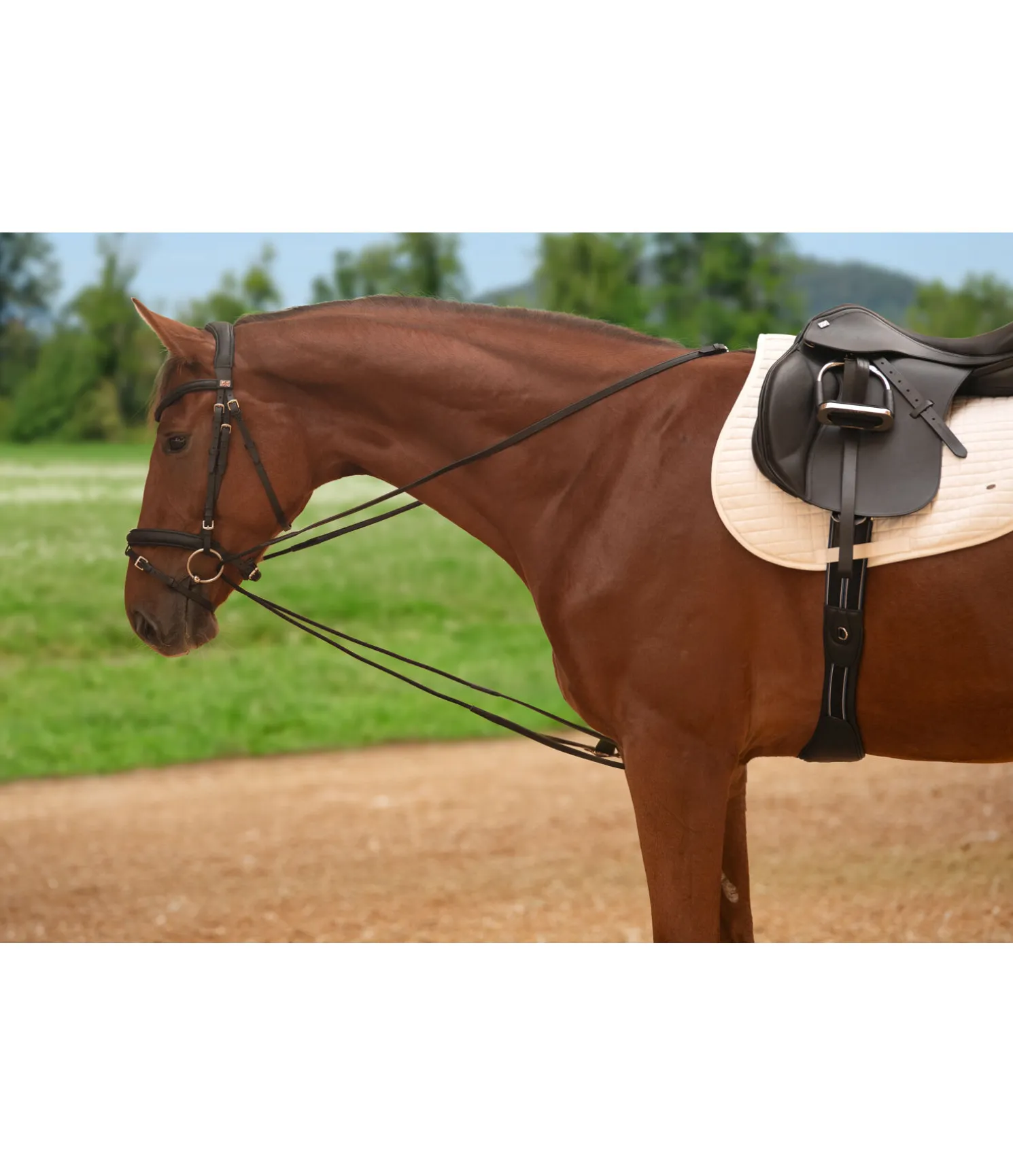 Les rênes allemandes sont à utiliser avec précaution. Entre des mains expérimentés elles peuvent être une aide au dressage. Veuillez évaluer vos propres compétences et votre expérience dans l’entraînement avant d’utiliser des rênes allemandes. Entre des mains inexpérimentées ou maladroites peuvent causer des douleurs au cheval et être dangereuses