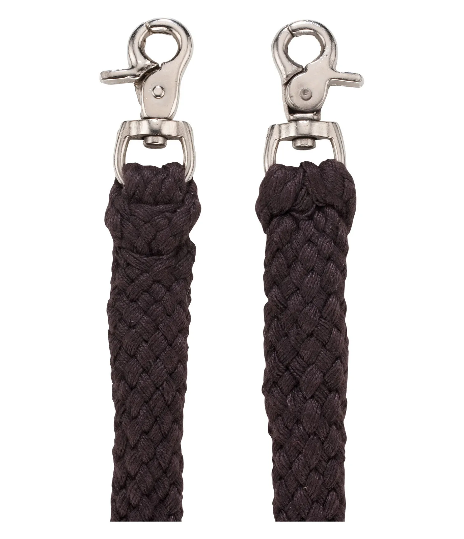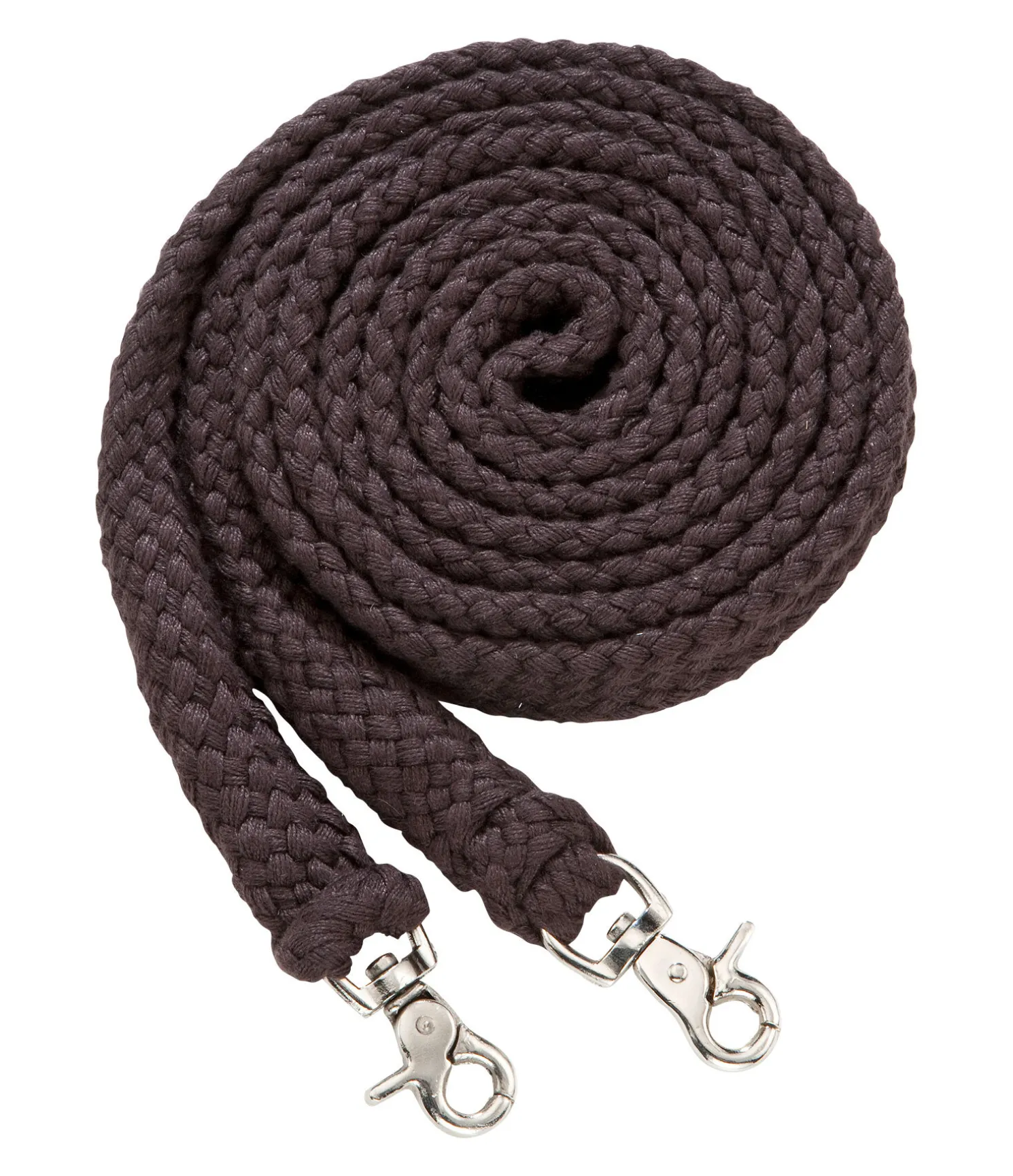 Rênes en coton fermées. Douces et pratiques avec des mousquetons mexicains argentés. Full = 300 x 2 cm, Poney = 200 x 2 cm.