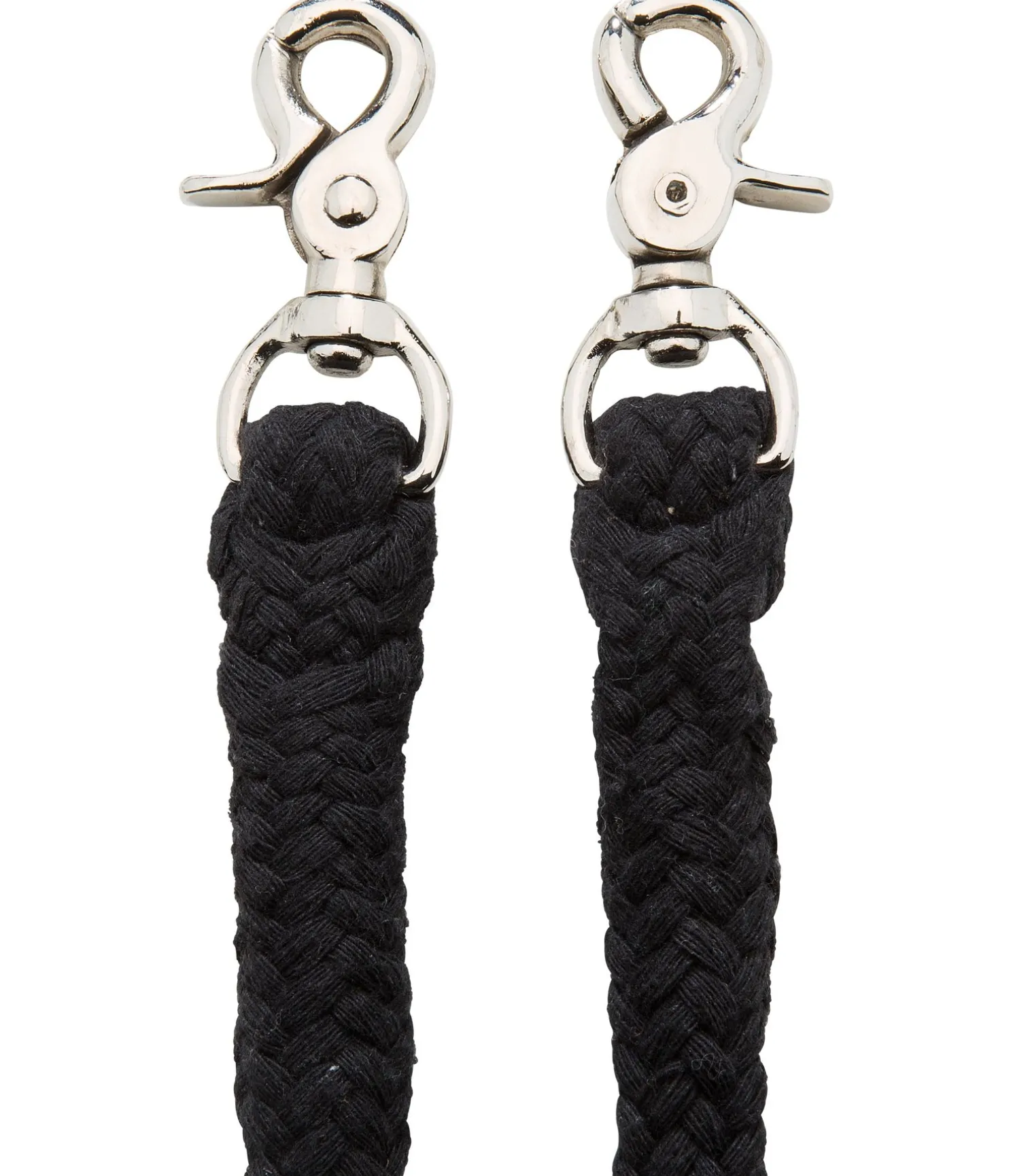 Rênes en coton fermées. Douces et pratiques avec des mousquetons mexicains argentés. Full = 300 x 2 cm, Poney = 200 x 2 cm.