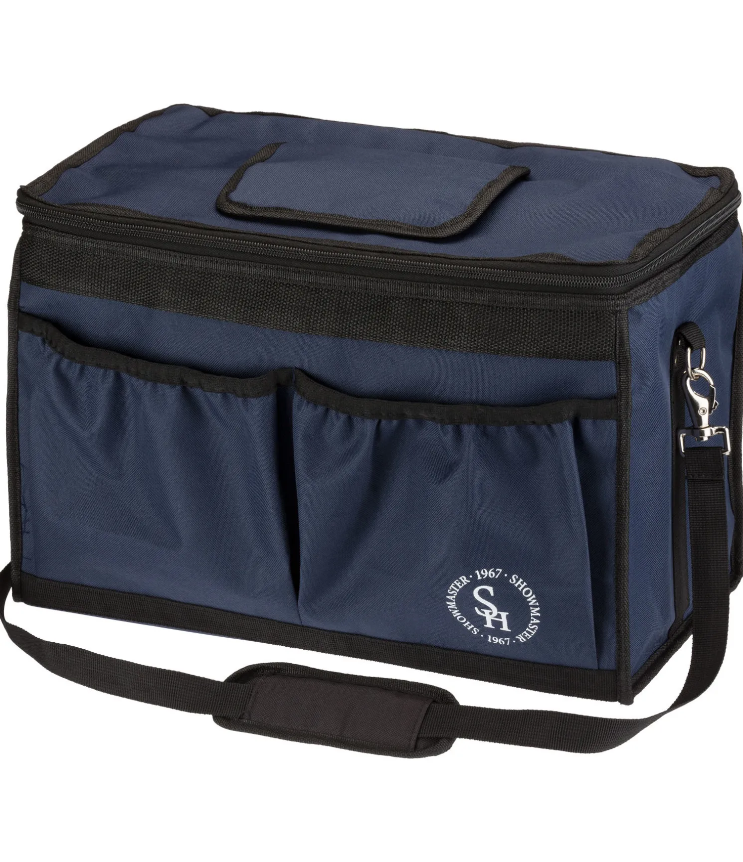 Le sac de pansage SHOWMASTER EasyGo est particulièrement pratique à transporter grâce à la barre métallique intérieure servant de poignée. Un rabat sur le haut du sac permet de l’atteindre facilement, sans laisser pénétrer la saleté. Ce sac possède deux poches et deux filets à l’extérieur ainsi qu’une bandoulière amovible. À l’intérieur, plusieurs élastiques permettent de maintenir les flacons en position verticale, afin d’éviter qu’ils ne se déversent dans le sac. 45 x 30 x 23 cm. 100 % Polyester.