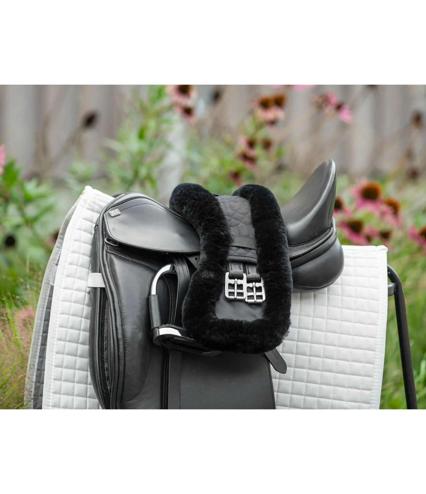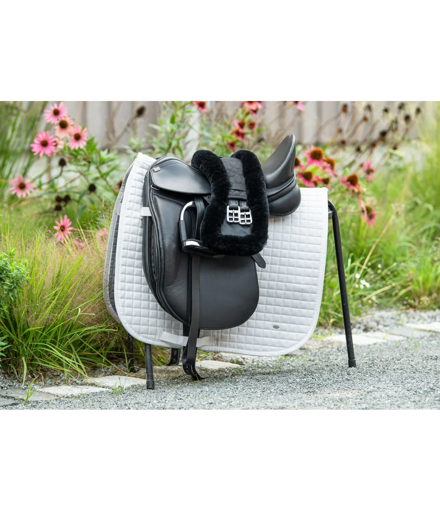 Sangle courte anatomique demi-lune particulièrement confortable, fabriquée dans un tissu matelassé à la fois robuste et souple et avec doublure en fourrure d’agneau. Assure un ajustement et une répartition optimale des points de pression. Avec anneau en D centré et empiècements élastiqués des deux côtés. Largeur 12 à 17 cm. Lavable à 30 degrés avec un programme de lavage spécifique pour la laine. Veuillez utiliser uniquement une lessive pour fourrure d’agneau. Fourrure 100 % agneau mérinos, tissu matelassé 70 % polyester, 30 % coton, rembourrage 100 % polyester