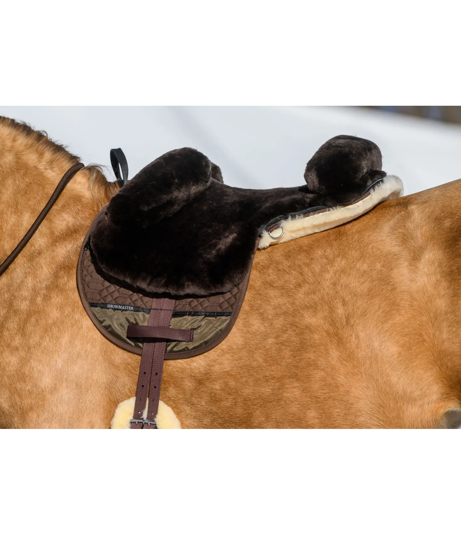 Selle en véritable fourrure d’agneau améliorant de manière significative la communication entre le cavalier et le cheval. Extérieur et dessous 100 % fourrure d’agneau. Taquets à l’avant pour un maintien sûr et un confort optimal. Inserts épais amovibles et repositionnables pour un parfait ajustement et un grand confort pour le cheval. Avec couteaux d’étrivières, deux anneaux en D à l’avant, deux anneaux en D à l’arrière et longs contre-sanglons.