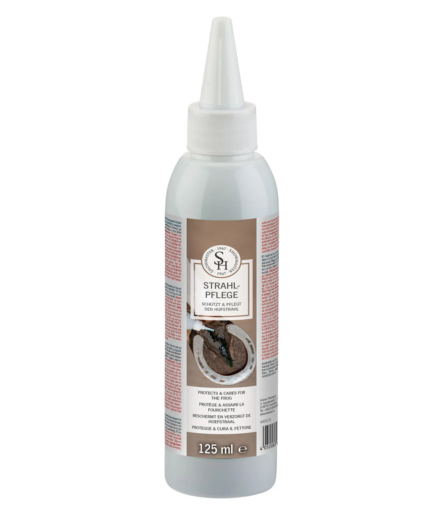 Application : Bien agiter avant utilisation! Nettoyer en profondeur la fourchette et le sabot puis appliquer le produit. Appliquer une à trois fois par semaine selon nécessité.