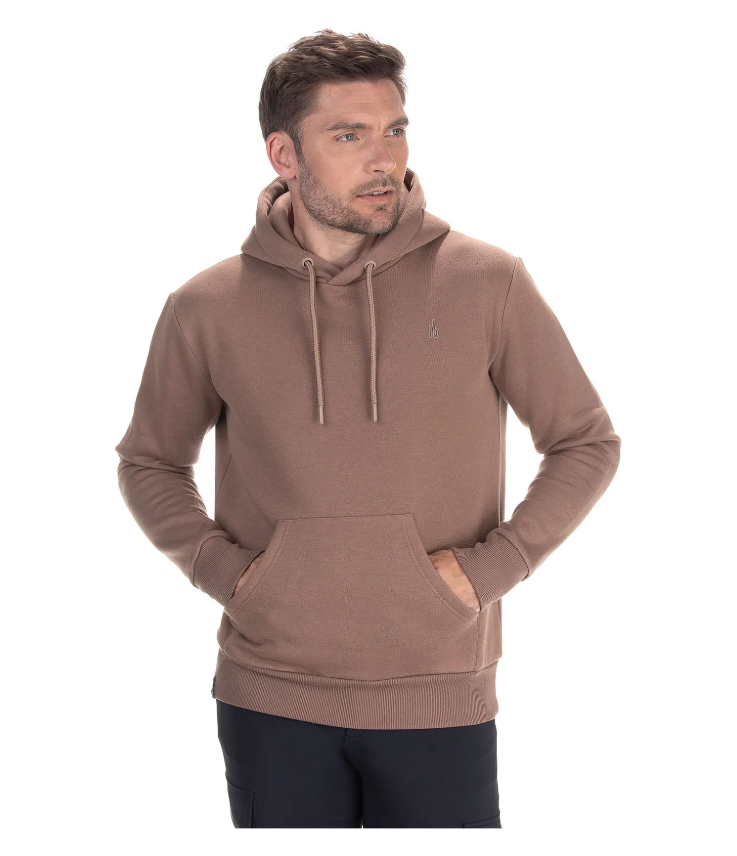 Sweat à capuche doux et sportswear en coton stretch de grande qualité. Poche kangourou. Finition en bord-côte sur le bas des manches et l’ourlet. Logo discret et nuancé sur la poitrine. 65 % polyester, 35 % coton.