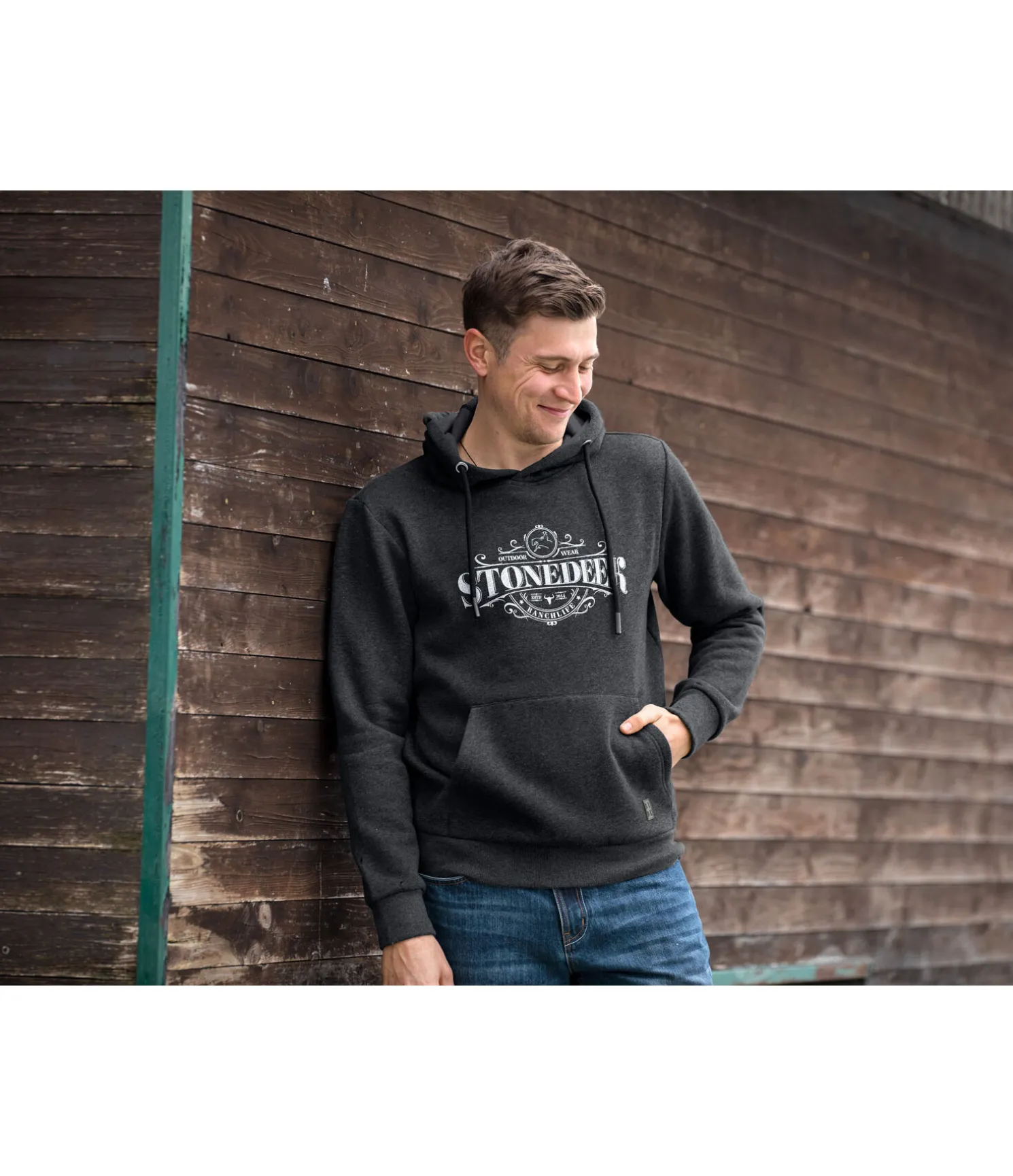 Sweat à capuche intemporel avec imprimé western sur la poitrine. 70 % polyester, 30 % coton.