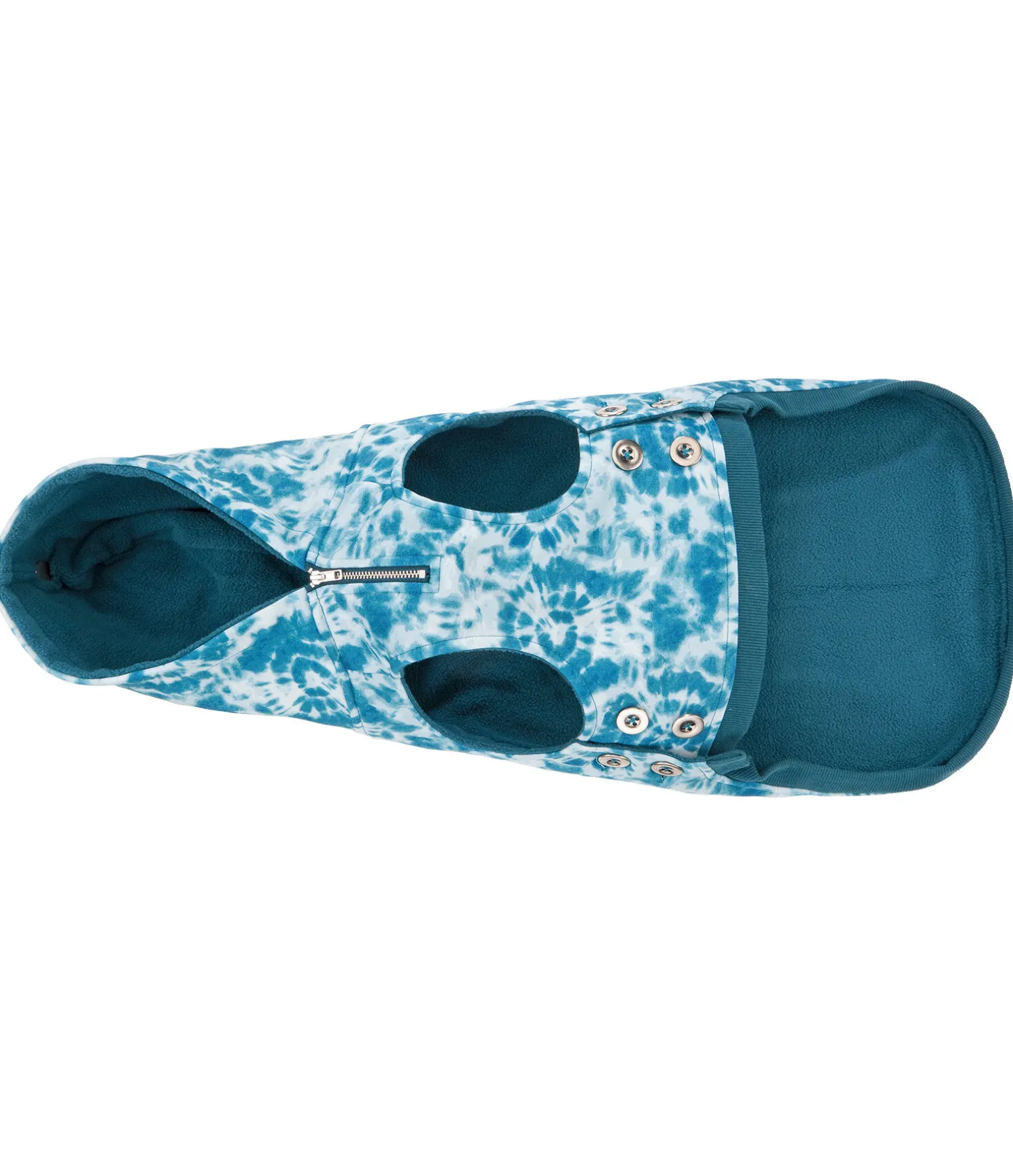 Sweat à capuche tendance à motif batik. Capuche avec système d’attache par bouton-pression dans le dos. Doublure chaude en polaire douce. Enfilage, retrait et ajustement faciles grâce à la double rangée de boutons sur la sangle ventrale et la fermeture à glissière au niveau du poitrail. Poche kangourou plaquée au dos pour compléter le look tendance. Ouverture pour le harnais. Pour enfiler le sweat, il suffit d’ouvrir les boutons latéraux au niveau de la sangle ventrale et si nécessaire la fermeture à glissière au niveau du poitrail et de faire passer la tête du chien par l’encolure. Fermer ensuite les 4 boutons. 100 % polyester.