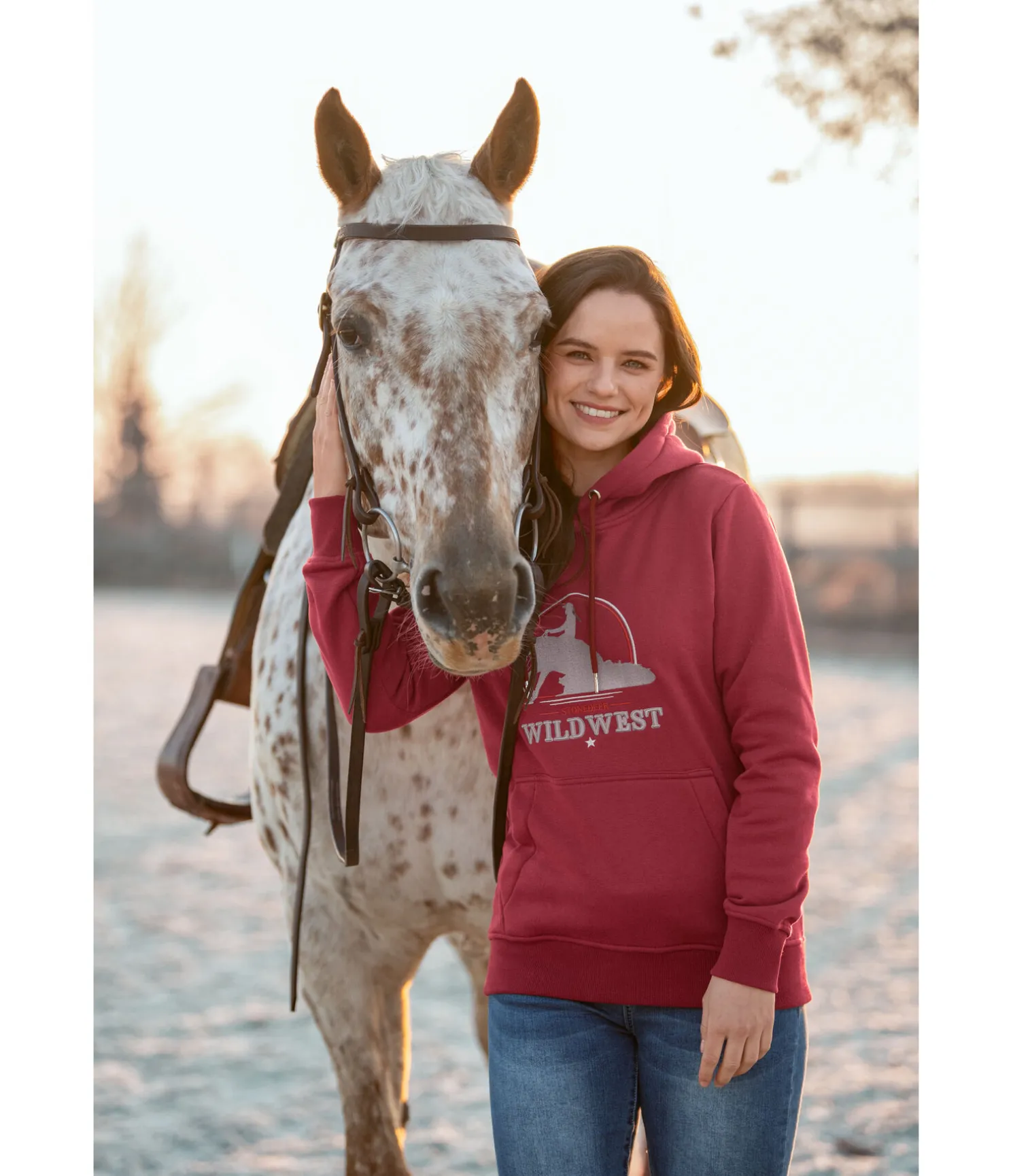 Sweat à capuche classique. Matière respirante. Motif western brodé sur la poitrine. Poche kangourou boutonnée. Bord-côte en bas des manches et à la taille. 65 % polyester, 35 % coton.