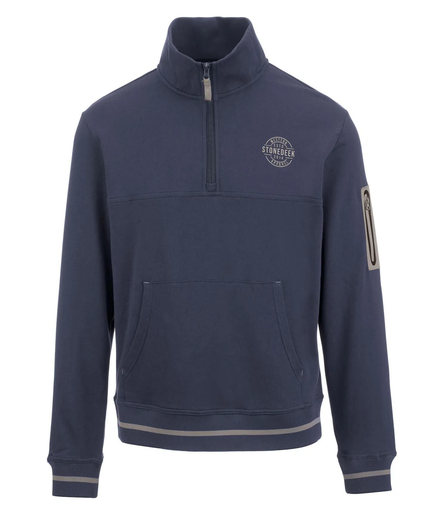 Sweat à col zippé de qualité supérieure pour homme. Respirant, avec poche plaquée zippée sur le bras. Logo de la marque sur la poitrine et poche kangourou à l’avant. Bordure côtelée et col montant avec fermeture à glissière. 100 % coton.