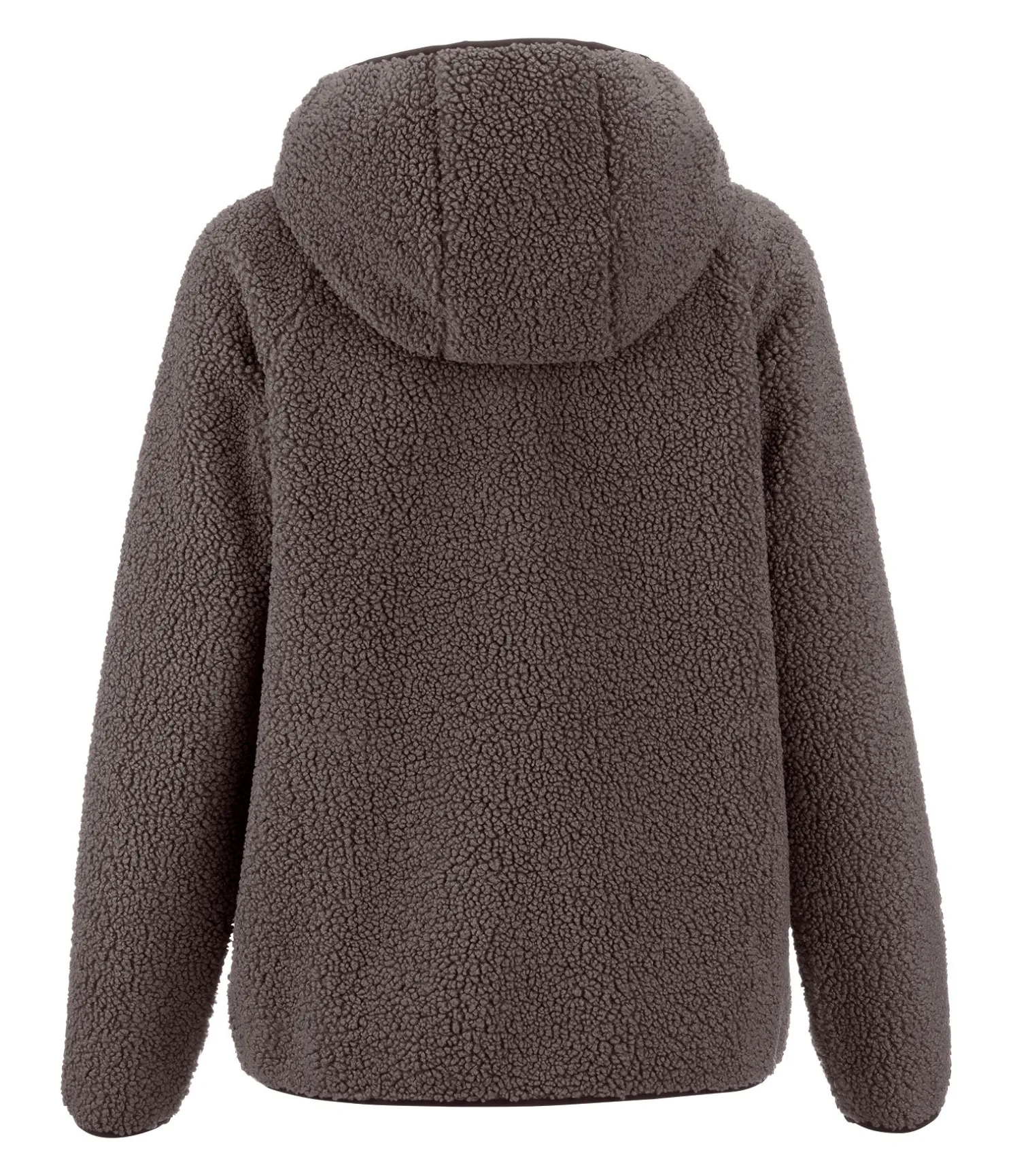 Sweat à capuche en tricot polaire Teddy douce. Patte de boutonnage avec boutons-pression de couleur contrastante. Deux poches latérales avec bouton-pression. Bord élastiqué de couleur contrastante sur le bas des manches, la capuche et l’ourlet. Étiquette STEEDS à l’ourlet. 100 % polyester.
