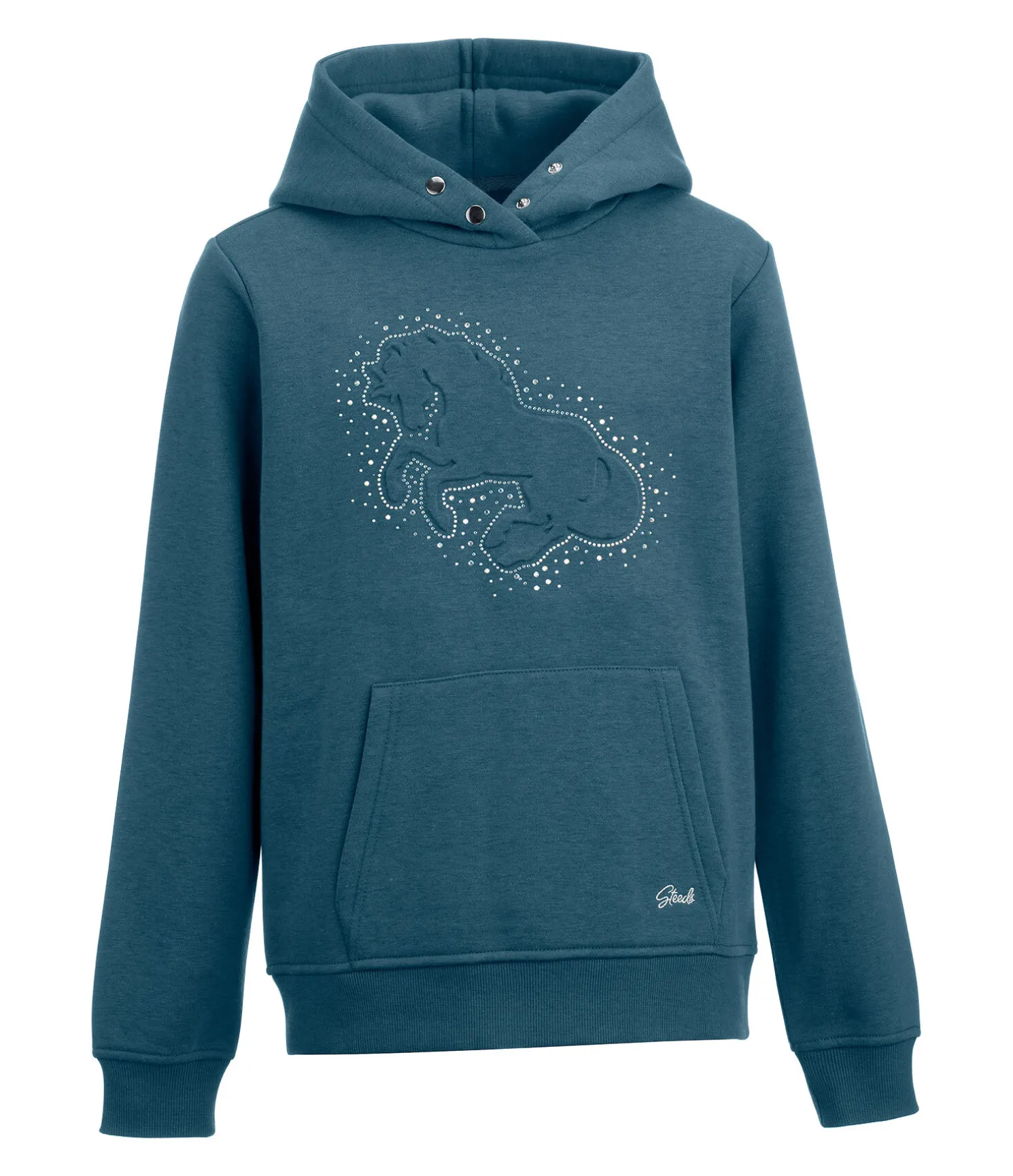 Superbe sweat à capuche avec imprimé en relief et strass aux couleurs de l’arc-en-ciel sur la poitrine. Capuche qui peut être fermée par boutons-pression. Agréablement doux grâce à son intérieur molletonné. Poche kangourou avec broderie STEEDS discrète. Bord des manches et taille en maille côtelée fine. 65 % polyester, 35 % coton.