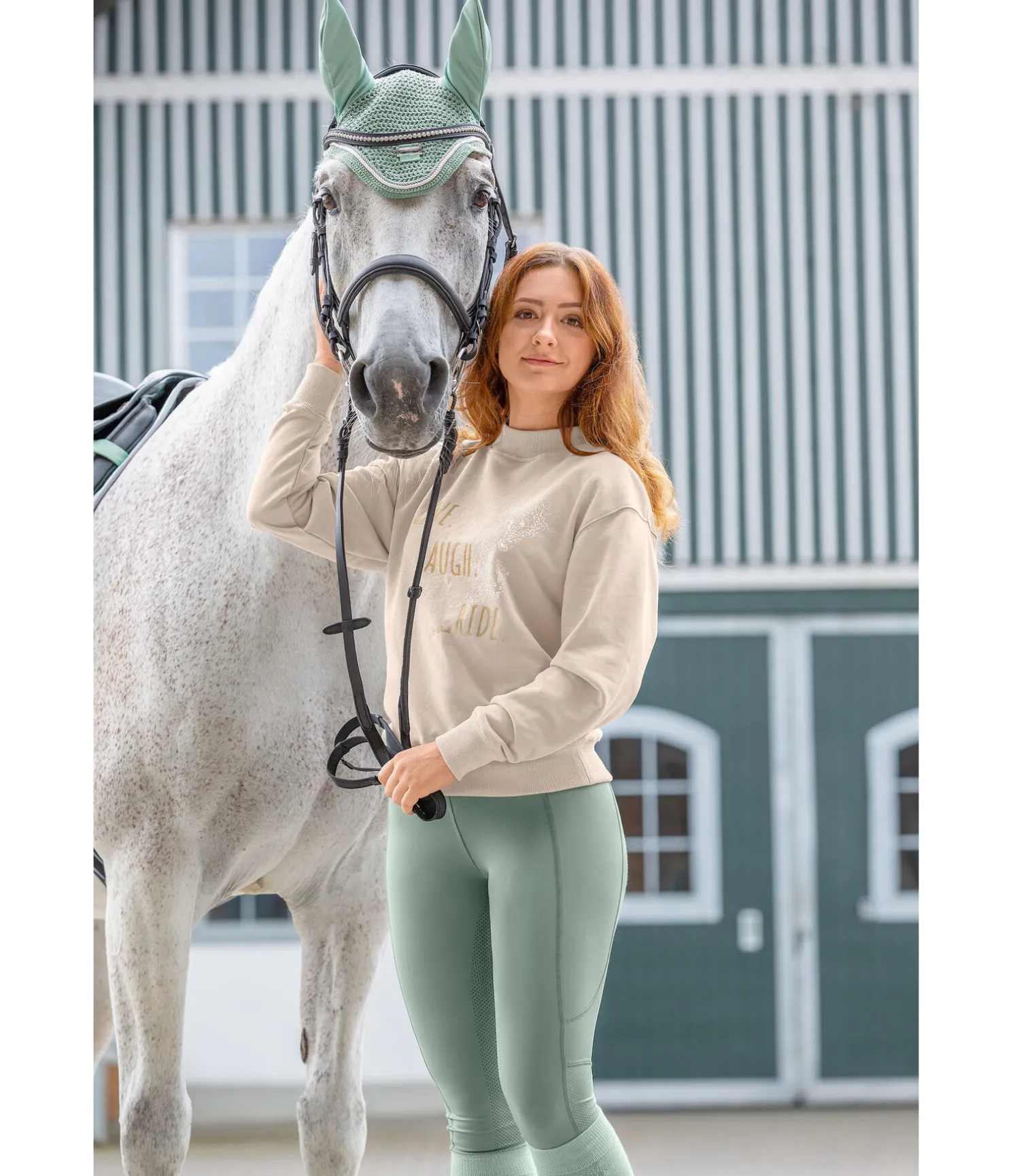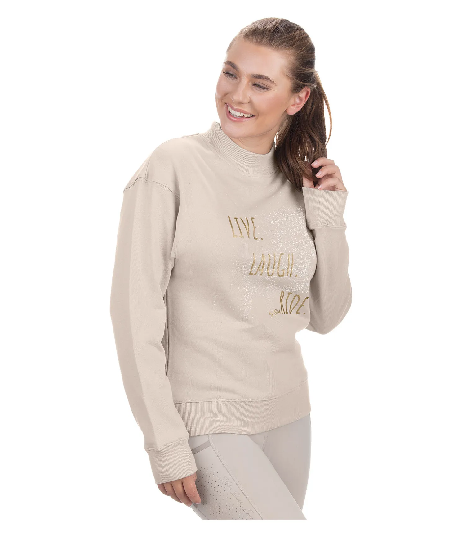 Sweat doux à col rond. Grand motif équestre imprimé sur la poitrine. Finition bord-côte à la taille, au col et sur le bas des manches. 100 % coton.