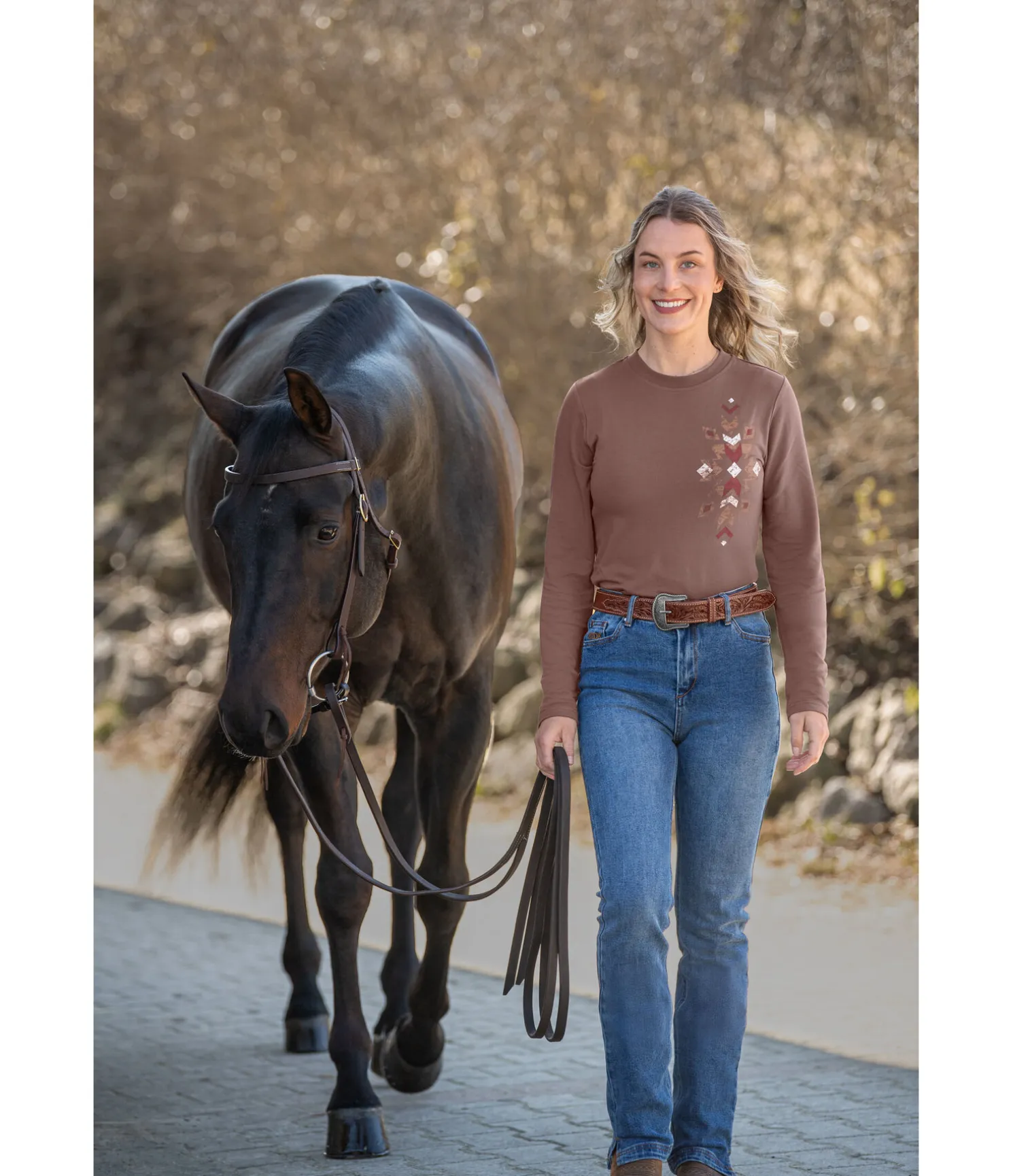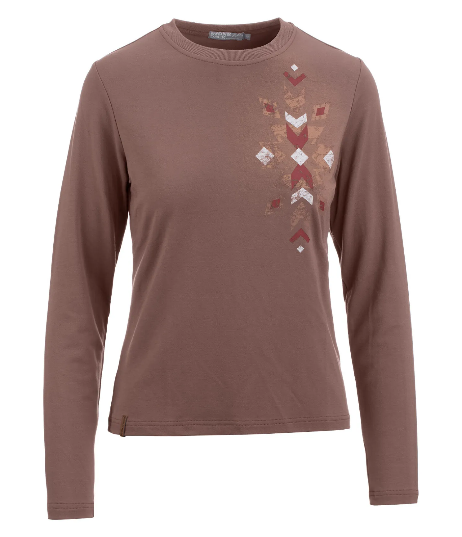 T-shirt à manches longues extrêmement doux avec impression ikat sur le devant. Avec un col rond en bord-côte et une coupe droite à la taille. 95 % viscose (à base de fibre de bambou), 5 % élasthanne.