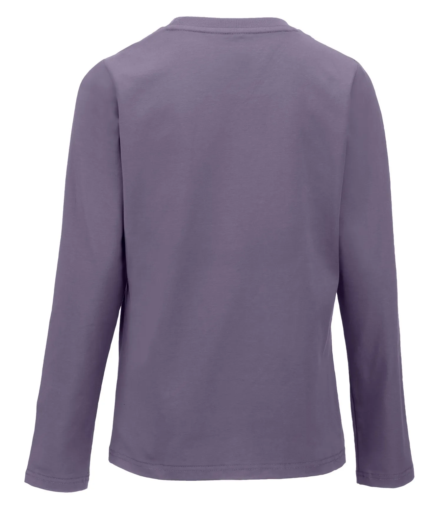 T-shirt à manches longues tendance pour enfant avec imprimé métallisé motif cheval scintillant. Col rond. 95 % coton, 5 % élasthanne.