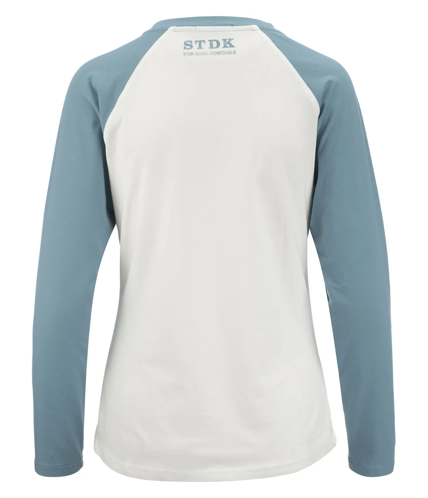T-shirt décontracté à coupe ample avec motif western sur la poitrine et manches de couleur contrastée. Respirant. 95 % coton, 5 % élasthanne.