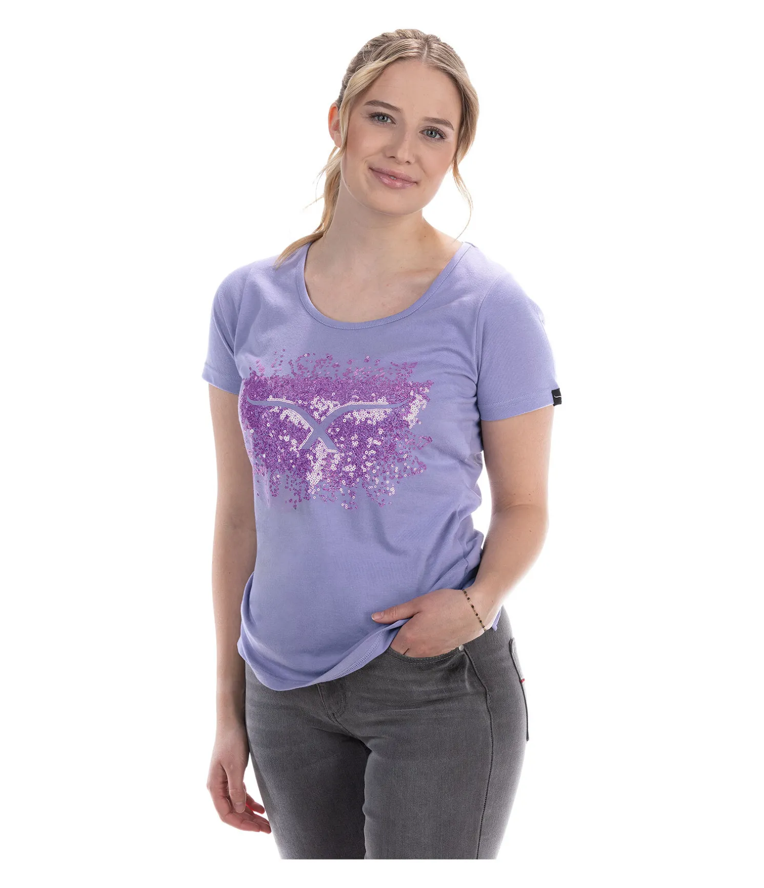 T-shirt à col rond. Matière respirante. Motif pailleté sur la poitrine. 65 % polyester, 35 % coton.