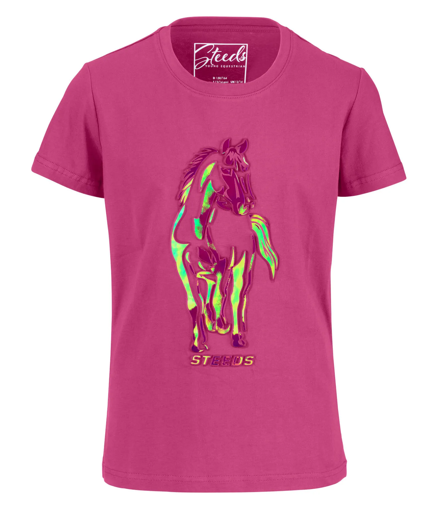 T-shirt décontracté à col rond avec joli imprimé cheval en relief. 100 % coton.