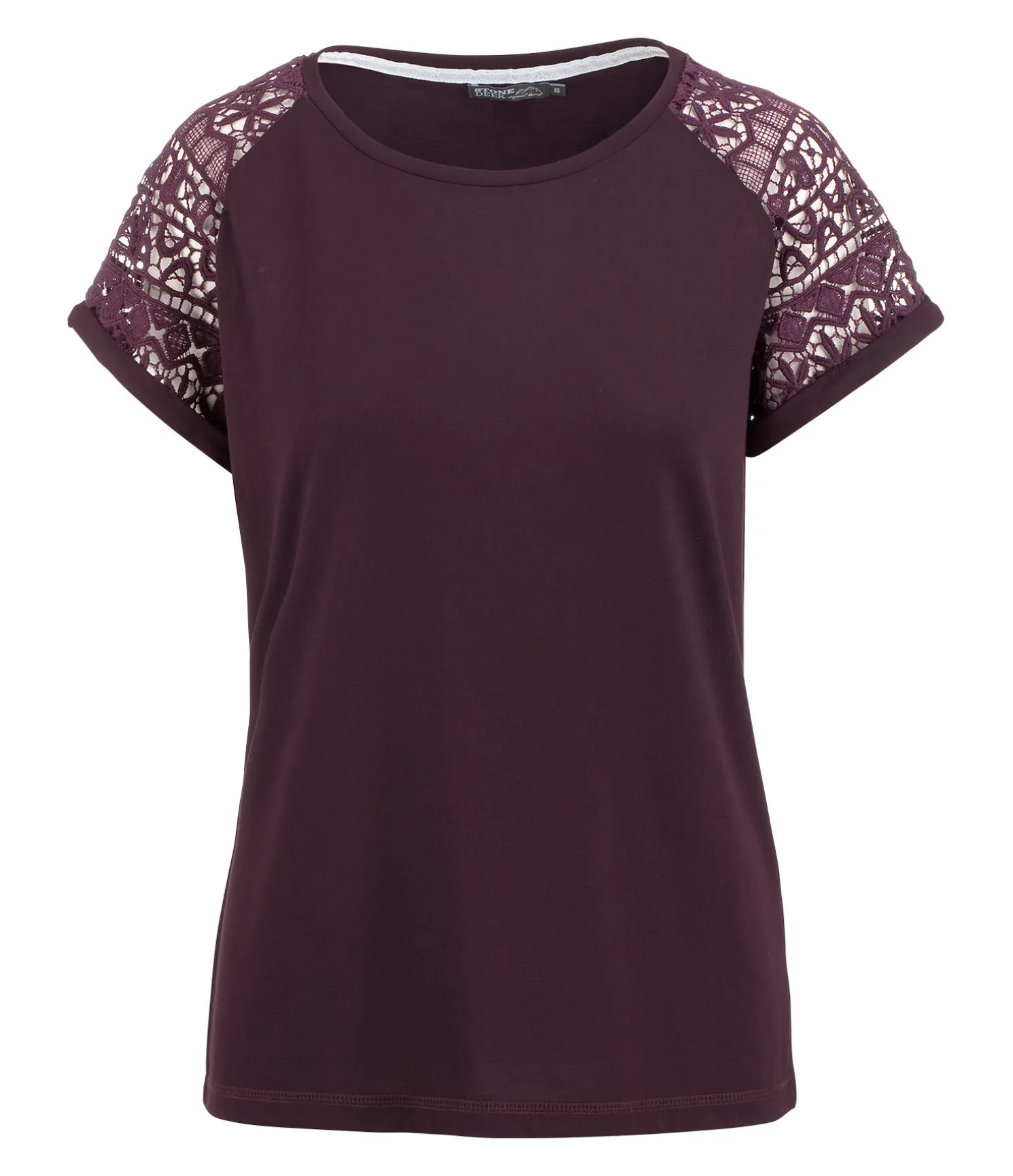 T-shirt à col rond. Coupe ample. Manches en dentelle. Matière respirante. 62 % polyester, 33 % viscose, 5 % élasthanne.
