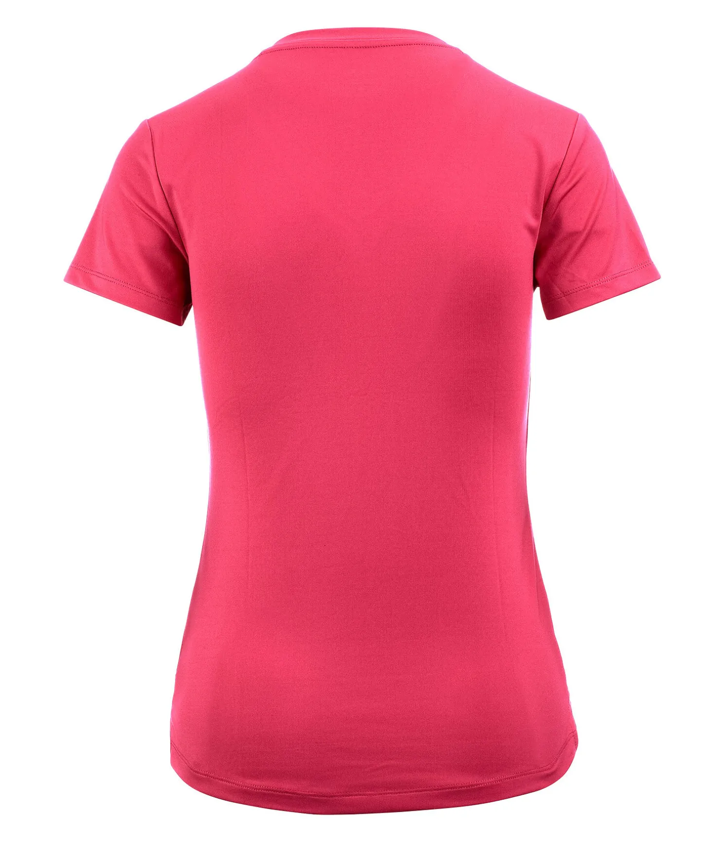 T-shirt fonctionnel à col V. Matière respirante à séchage rapide. Motif scintillant cheval sur la poitrine. 88 % Polyester, 12 % élasthanne.