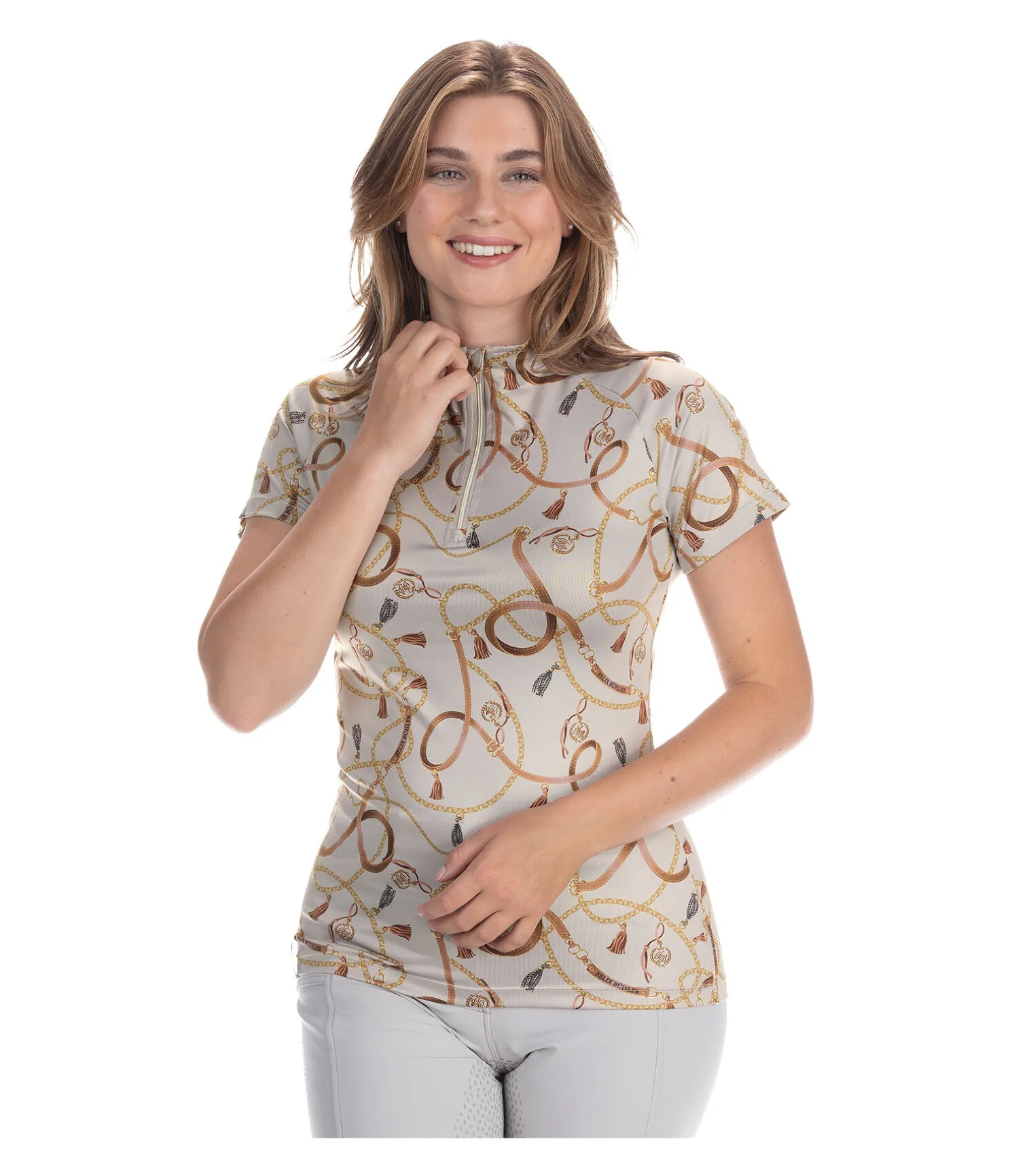 T-shirt fonctionnel à manches courtes raglan. Matière respirante à séchage rapide. Motif all-over. Col montant zippé avec protège-menton. 88 % polyester, 12 % élasthanne.