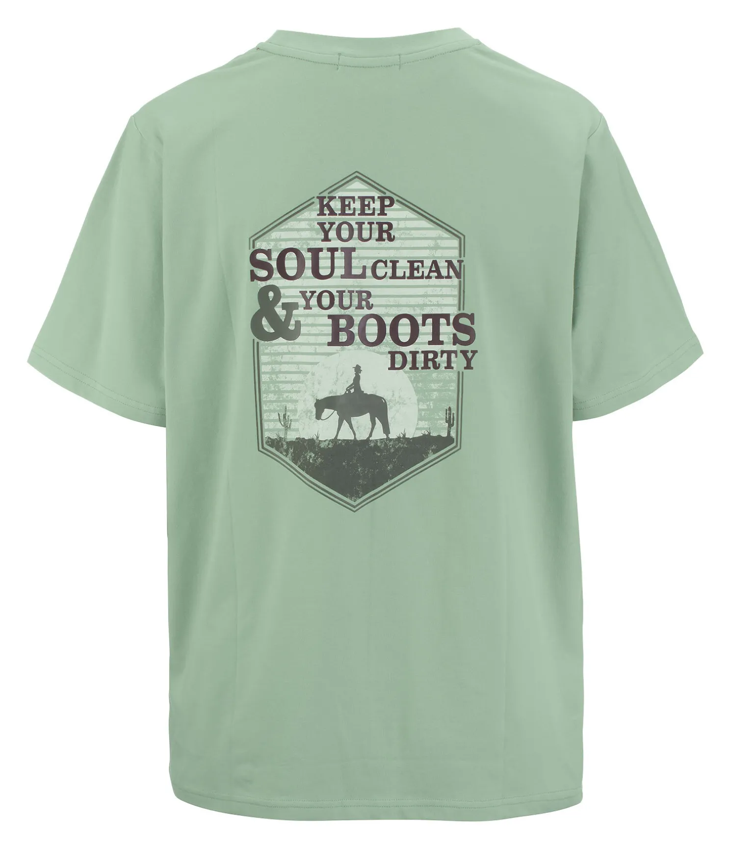 Confortable T-shirt oversize avec poche sur la poitrine et grand motif western dans le dos. Respirant. 95 % coton, 5 % élasthanne.