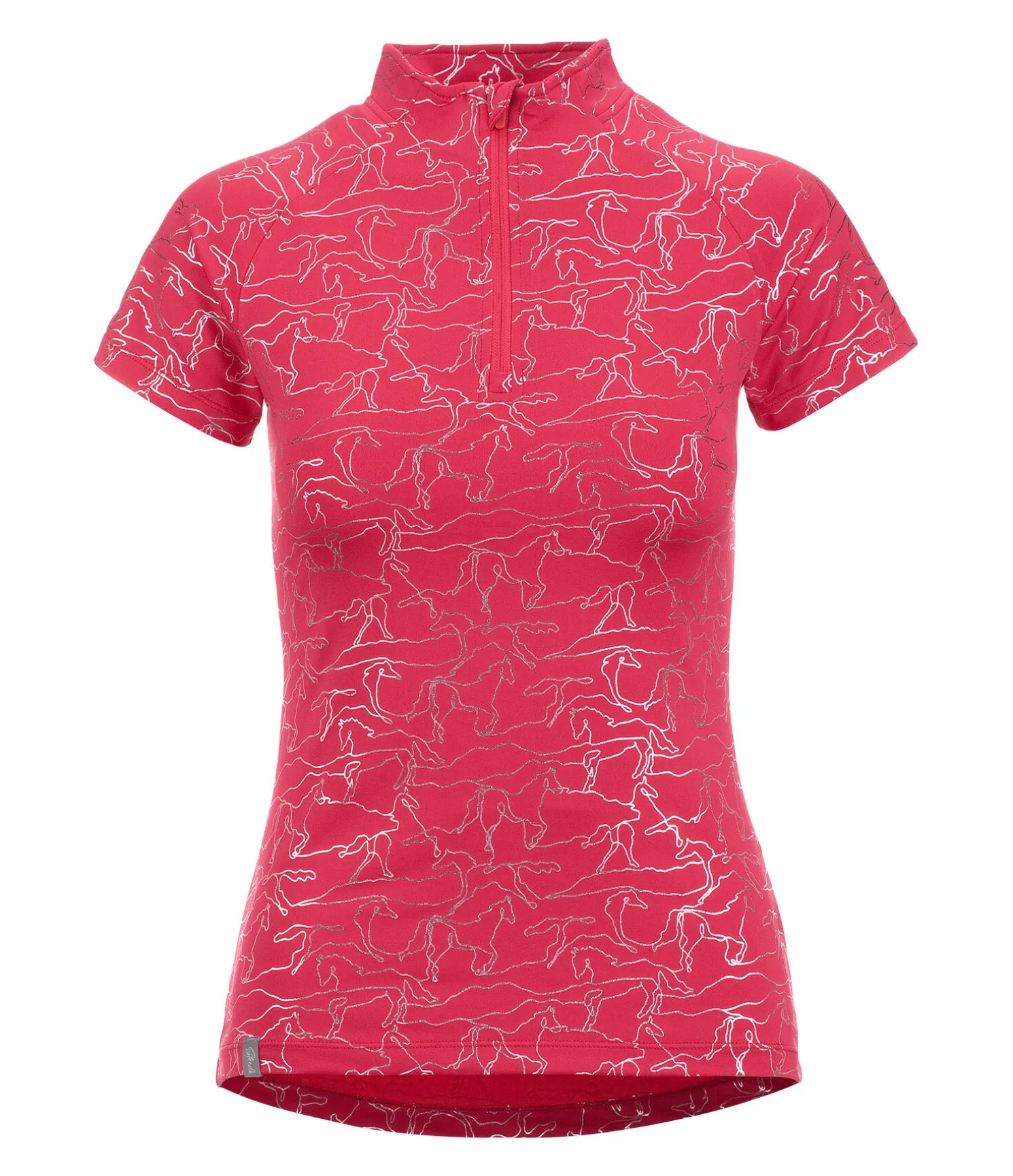 T-shirt technique. Manches raglan. Col montant zippé avec protège-menton. Imprimé argenté all-over. Matière respirante à séchage rapide. 88 % polyester, 12 % élasthanne.