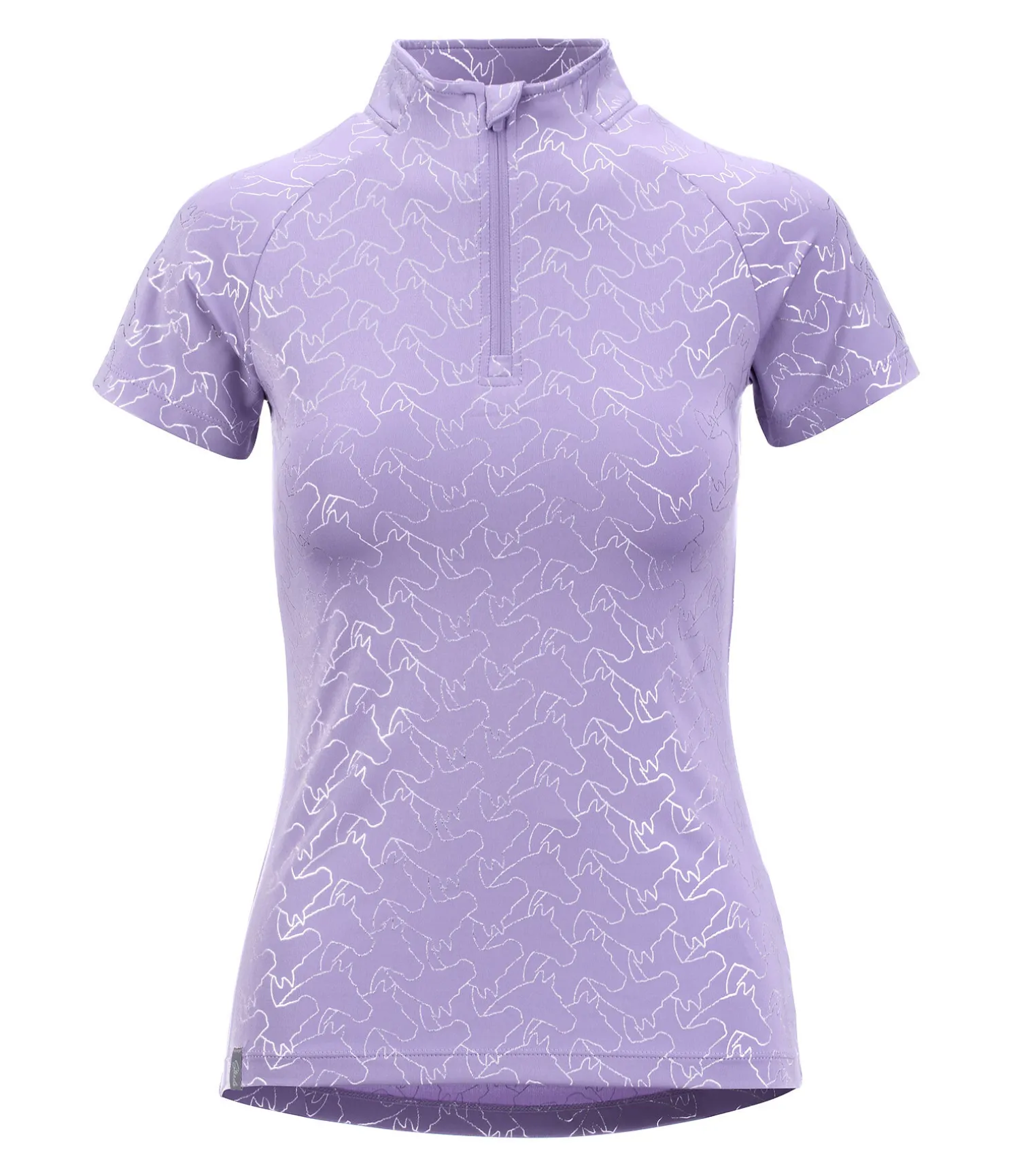 T-shirt chic et technique à manches courtes. Imprimé all-over métallisé motif tête de cheval. Manches raglan et petit col montant avec fermeture à glissière et protège-menton. Respirant et à séchage rapide. 88 % polyester, 12 % élasthanne.