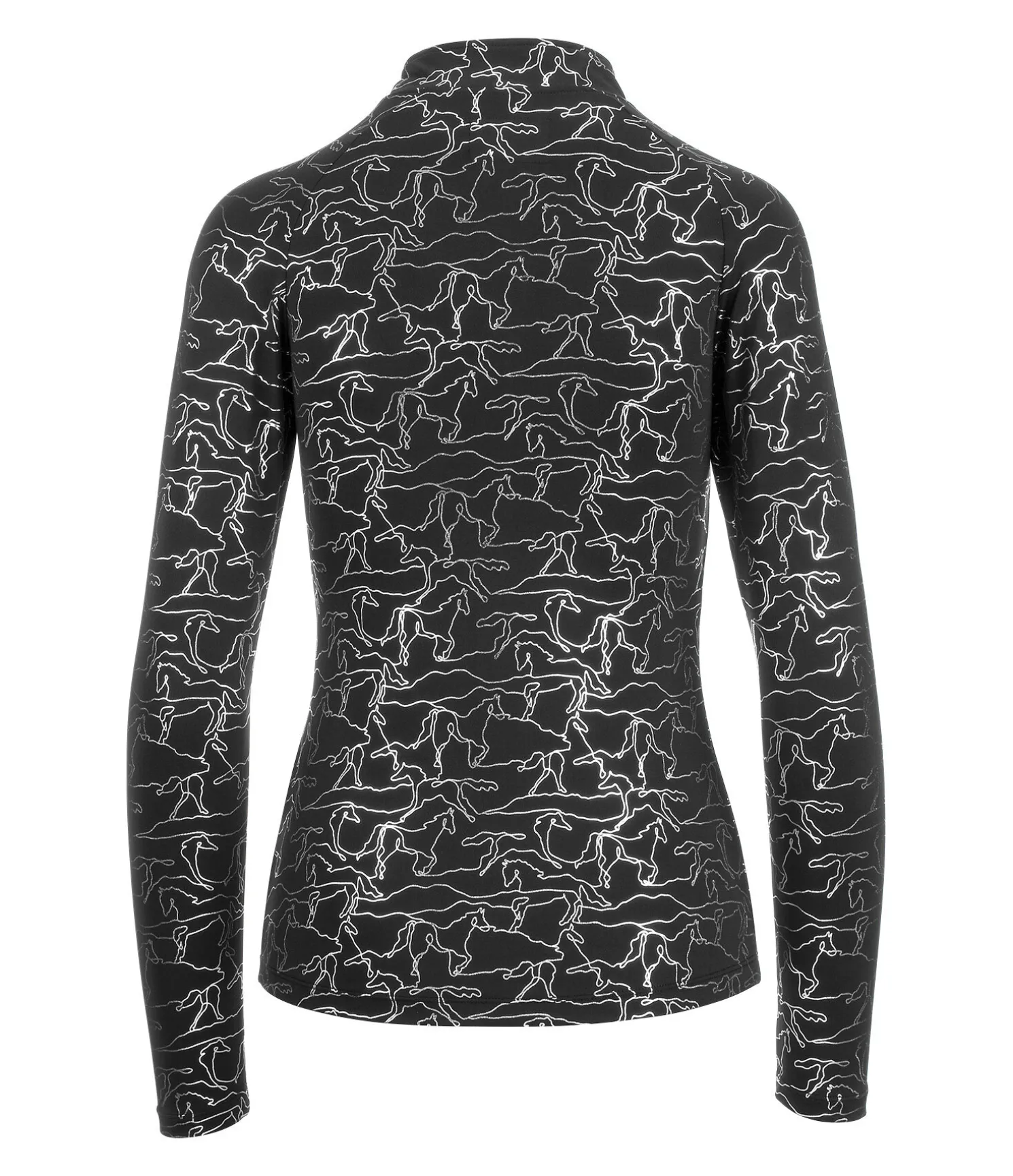T-shirt technique à manches longues. Imprimé métallisé cheval all-over. Manches raglan. Col montant zippé avec protège-menton. Matière respirante. Séchage rapide. 88 % polyester, 12 % élasthanne.