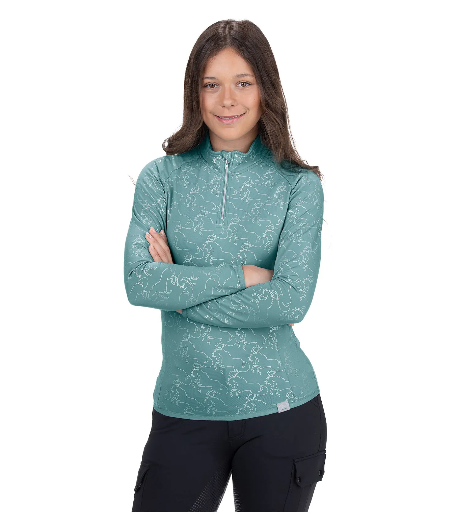 T-shirt technique et sportswear à manches longues avec imprimé scintillant all-over. Manches raglan. Col montant zippé avec protège-menton. Intérieur doux. Matière respirante. Séchage rapide. 90 % polyester, 10 % élasthanne.