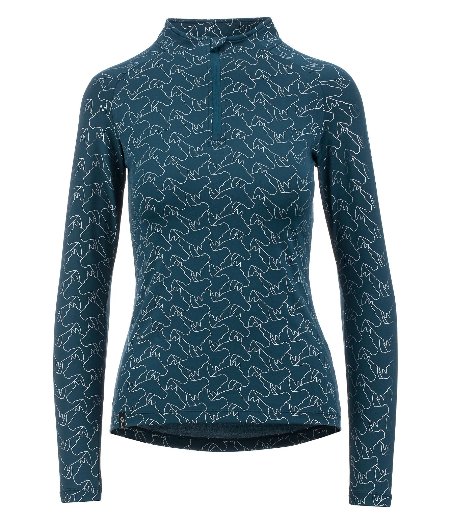 T-shirt technique à manches longues avec imprimé métallisé all-over. Manches raglan. Col montant zippé avec protège-menton. Matière respirante. Séchage rapide. 88 % polyester, 12 % élasthanne.