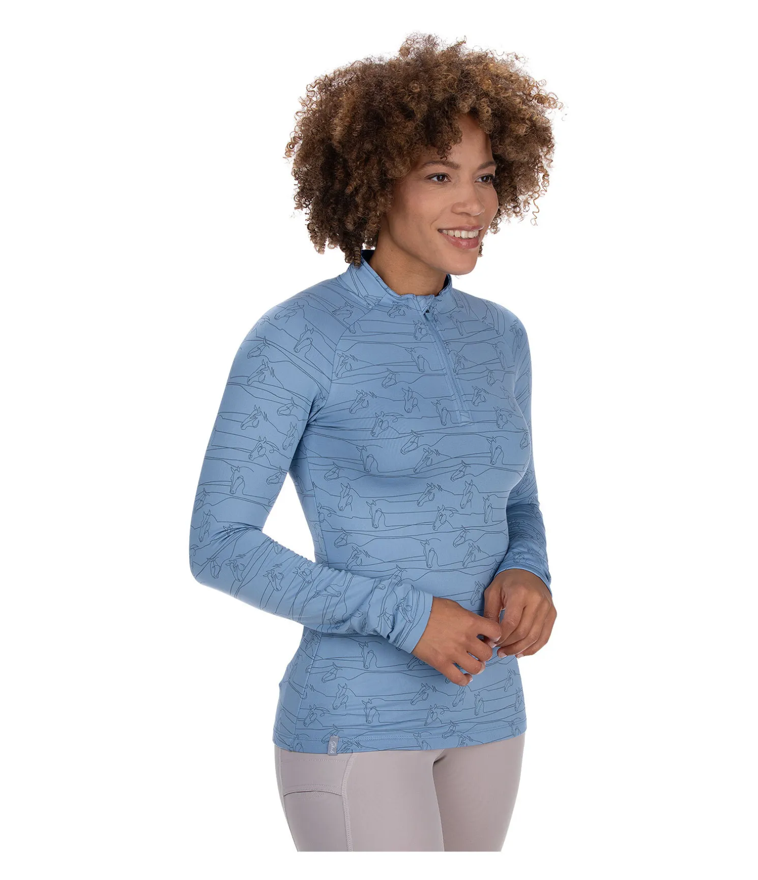 T-shirt technique à manches longues tendance avec intérieur molletonné et superbe imprimé all-over ton sur ton à motif cheval. Avec manches raglan. Col montant zippé avec protège-menton. Respirant et à séchage rapide. 90 % polyester, 10 % élasthanne.