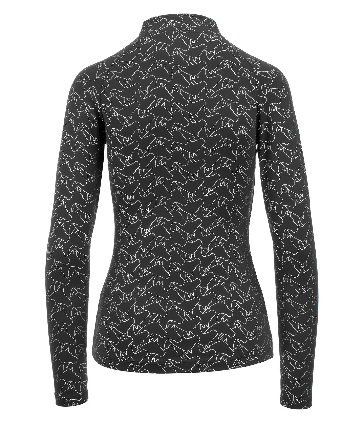 T-shirt technique à manches longues avec imprimé métallisé all-over. Manches raglan. Col montant zippé avec protège-menton. Matière respirante. Séchage rapide. 88 % polyester, 12 % élasthanne.