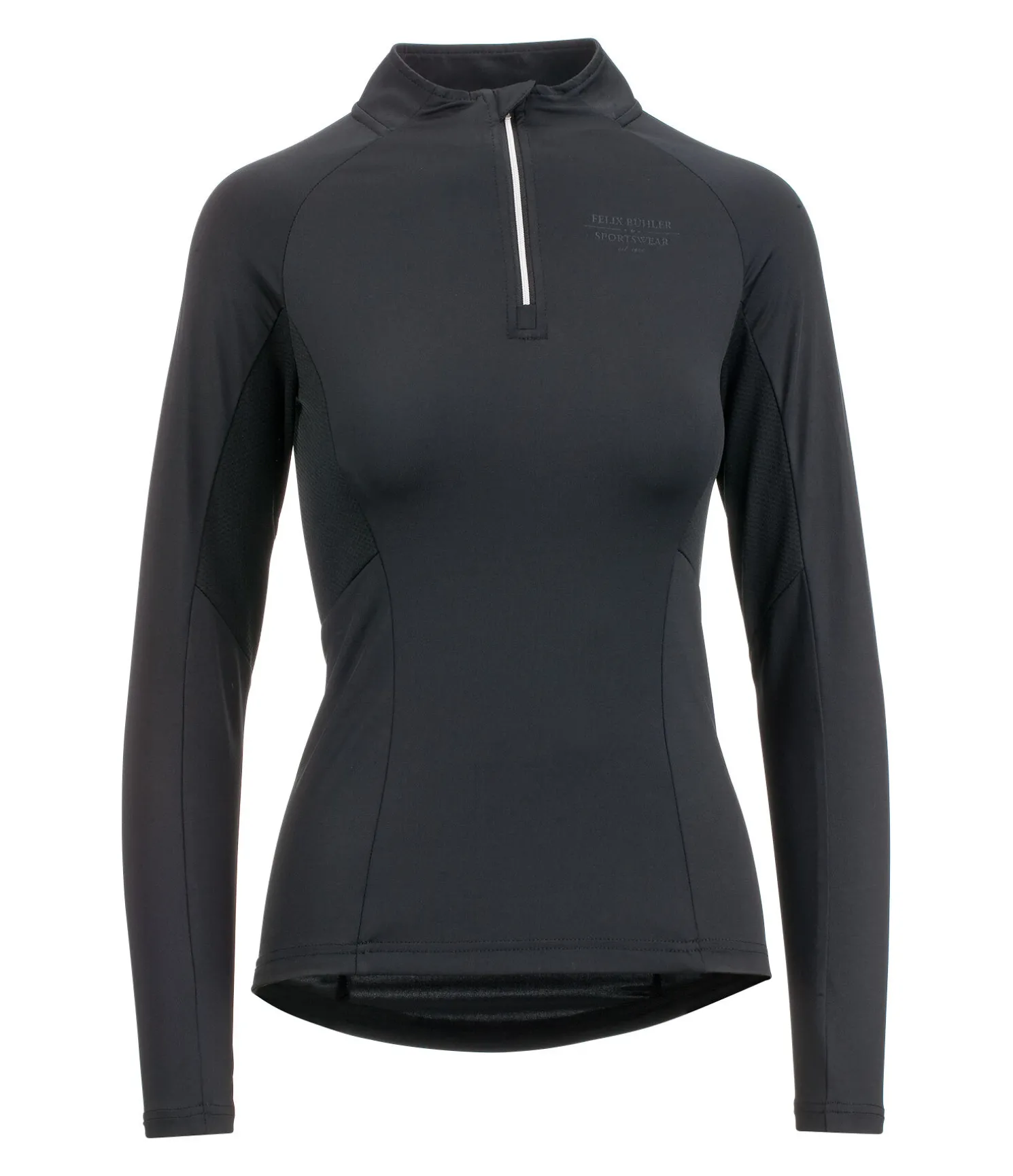 T-shirt à manches longues extensible et doux. Col montant zippé. Empiècements en mesh pour une respirabilité optimale. Manches raglan. Matière à séchage rapide. 88 % polyester, 12 % élasthanne.