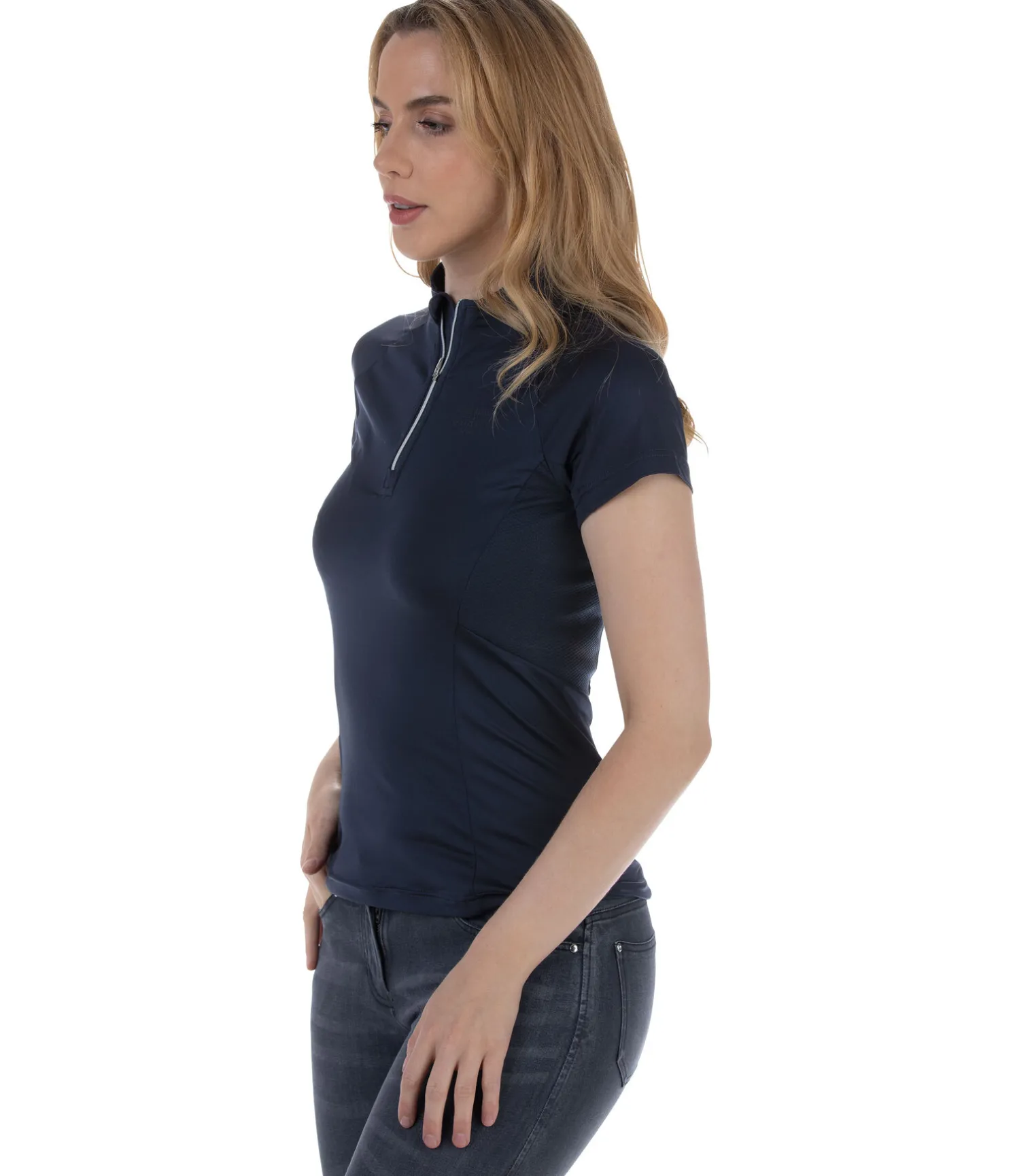 T-shirt extensible et doux. Col montant zippé. Empiècements en mesh pour une respirabilité optimale. Manches raglan. Séchage rapide. 88 % polyester, 12 % élasthanne.