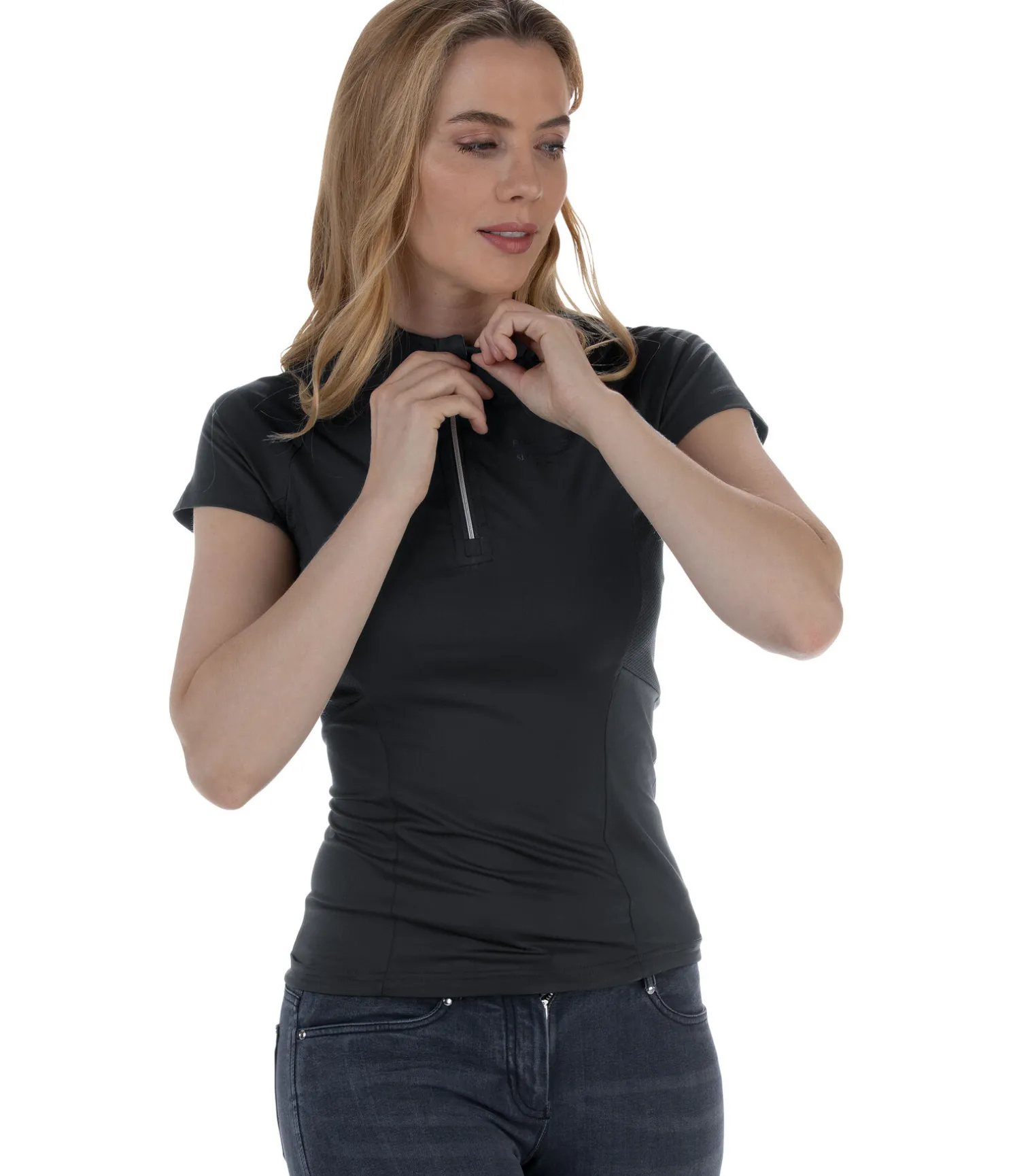 T-shirt extensible et doux. Col montant zippé. Empiècements en mesh pour une respirabilité optimale. Manches raglan. Séchage rapide. 88 % polyester, 12 % élasthanne.